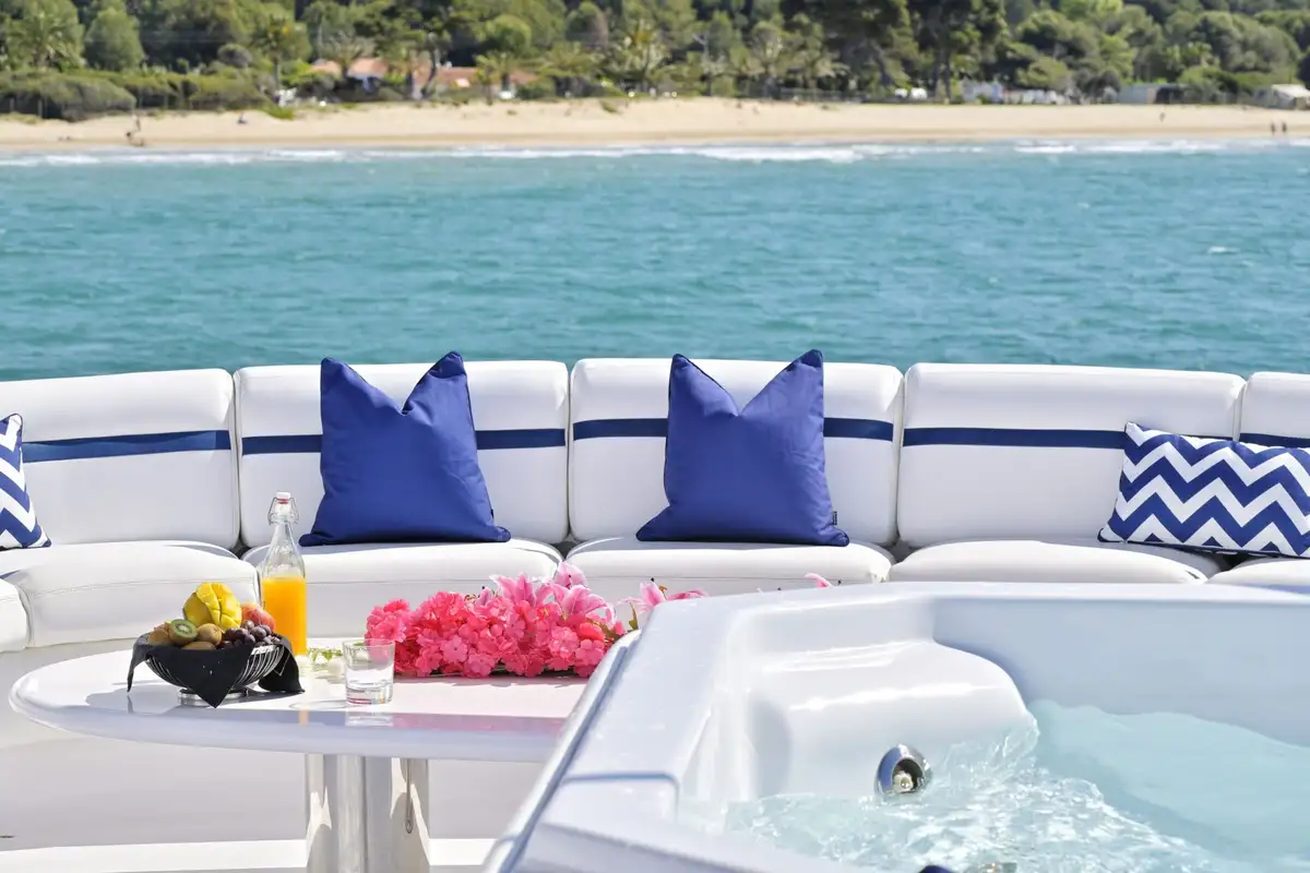 Backed by hills and vegetation, this picturesque beach is popular with visitors. There are other small coves barely accessible on foot but easy to reach by tender, ideal for privacy.