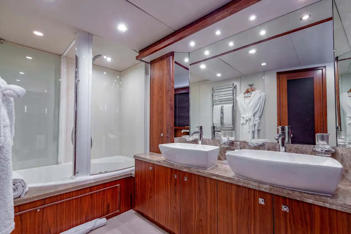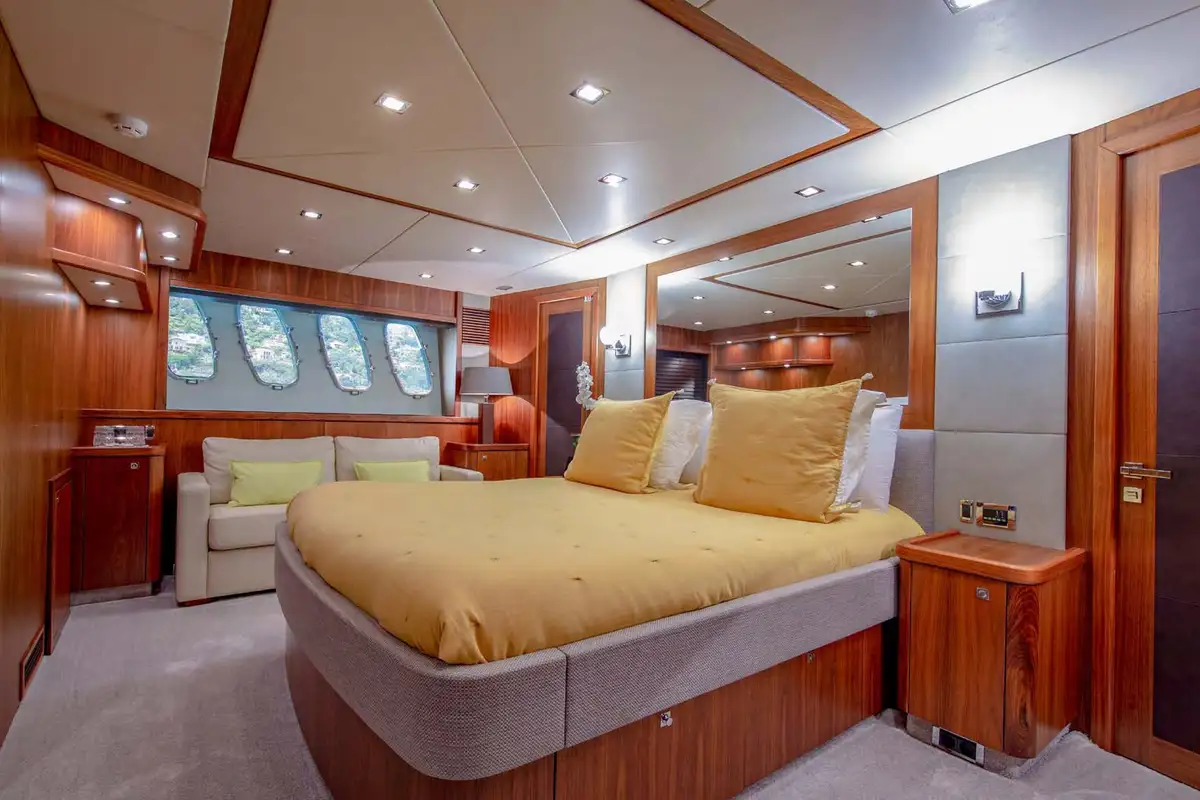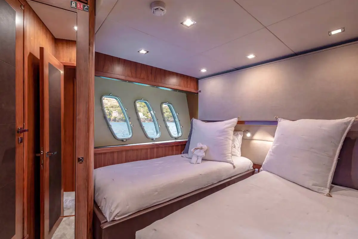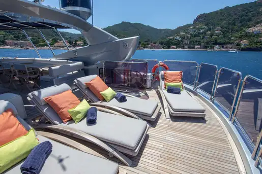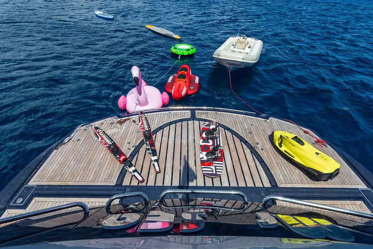 MR SEA, a Sunseeker 92’ from 2009, offers an incredible flexibility on the number of guests sleeping for a 28 meters yacht. Both twin cabins are convertibles and also have additional pullman beds for the youngest guests to welcome up to 10 persons on board. The interior design, with much wooden furniture, offers a classical and timeless style throughout the yacht and especially within the lower deck. MR SEA also features a Bose Soundtouch System II as well as SKY TV in the saloon, master and VIP cabins. Following her refit in 2018, the yacht features now zero-speed digital stabilisers for guest comfort at anchor, and has twin MTU 12V 2000 M93 engines providing a cruising speed of 22 knots and a top speed of 28 knots. MR SEA also includes a large list of water toys for adults and kids.