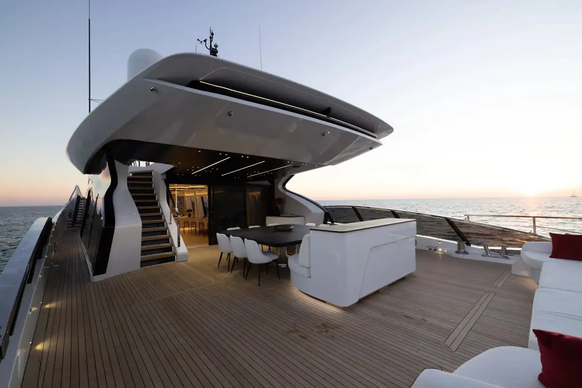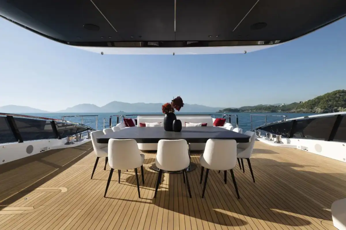 There is a further open-air living space on the main deck, where you can relish in the culinary delights from N1’s professional chef in the al fresco dining area, before enjoying digestifs on the aft deck or in the main lounge.