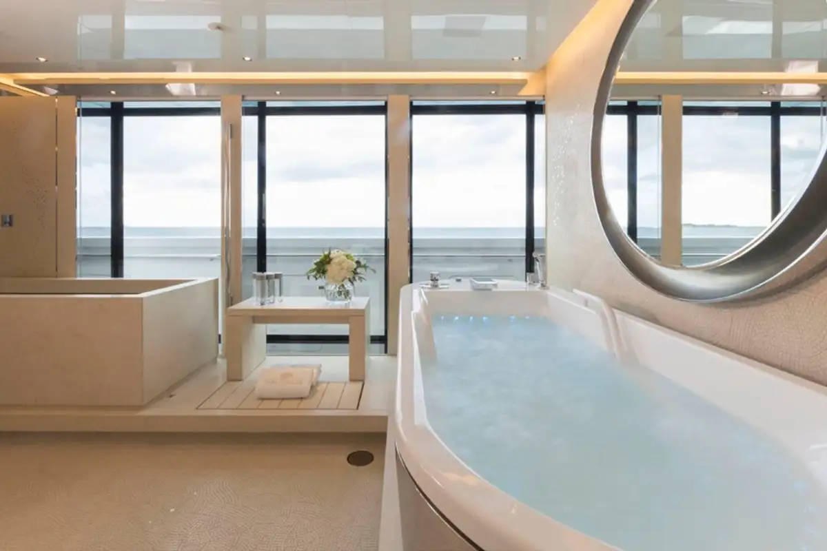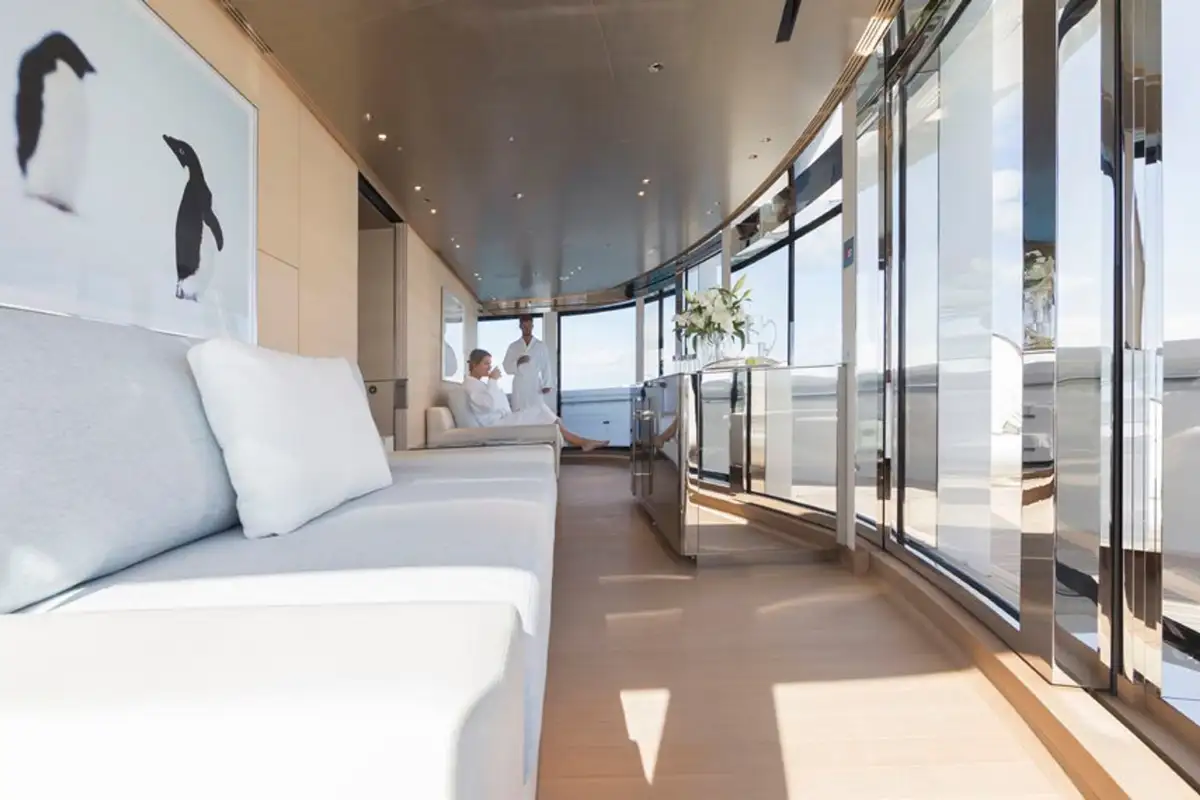 NAUTILUS has a zen-like interior featuring soft greys, browns and creams, with a nod to 1960s laidback cool. For a peaceful morning, enjoy the sanctuary of the sky lounge, followed by a dip in the sun deck’s jacuzzi and lounge on the sun pads or rotating circular sun loungers.