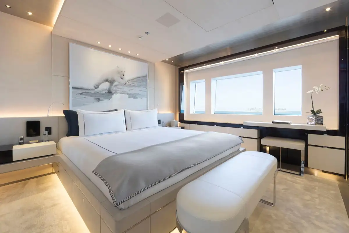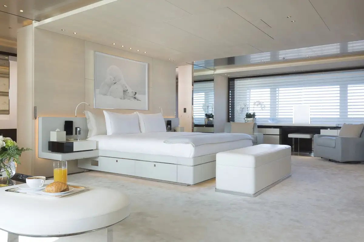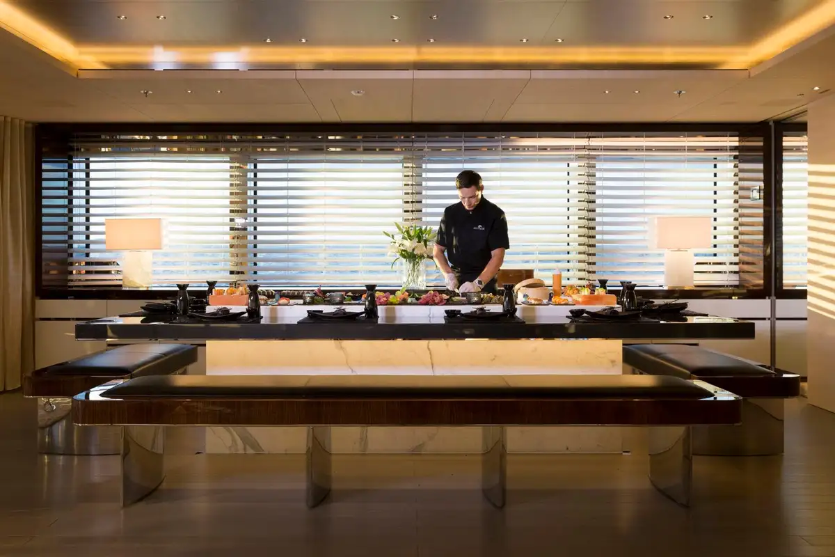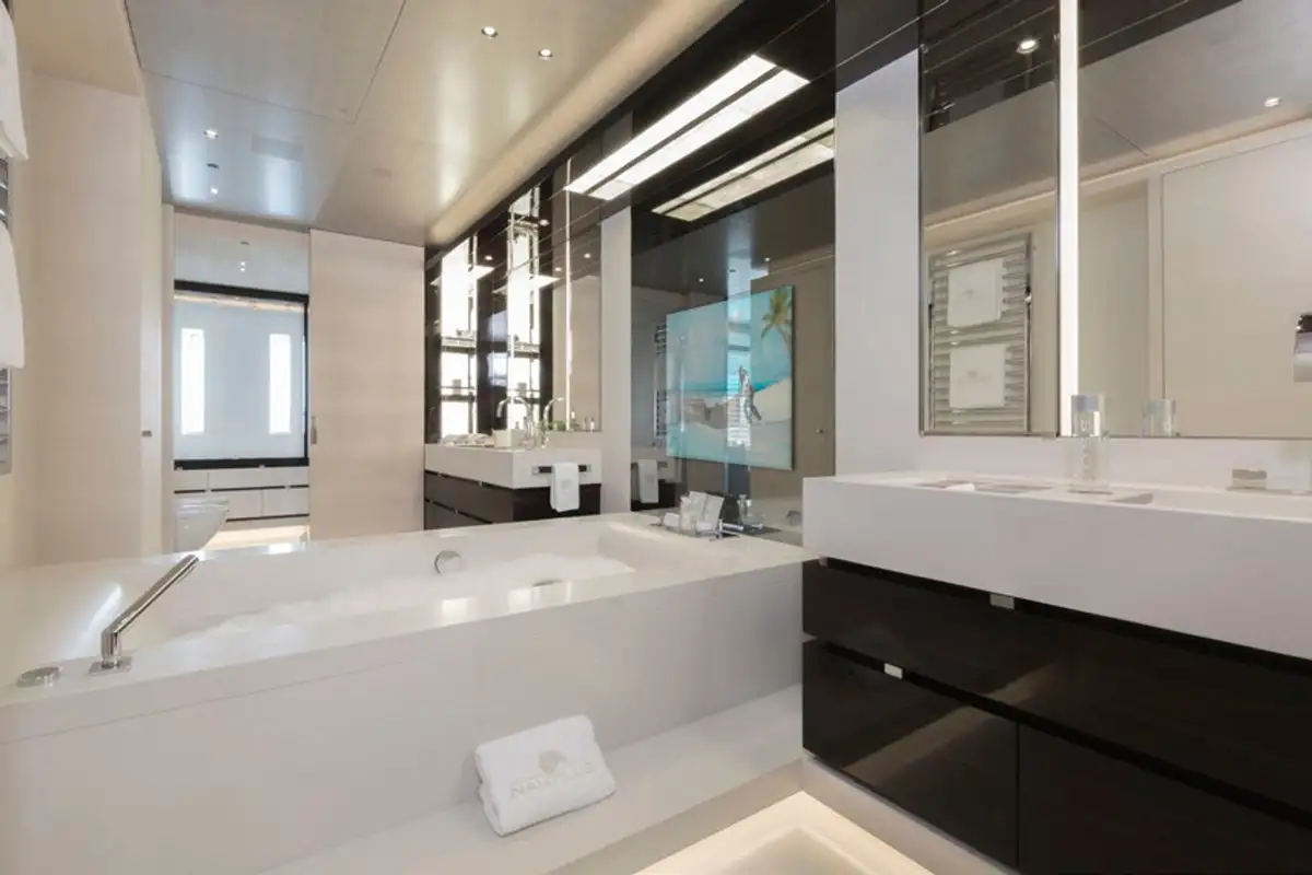 With seven bright, uniquely decorated cabins, NAUTILUS sleeps up to 12 guests. Her full beam master cabin is a masterclass in understated elegance, including a his and hers bathroom with feature bathtub, large fold-down TV and study area. There are two VIP suites on the main deck, while the lower deck has two double cabins and two twin cabins with pullman berths, which can be connected to create family suites.
