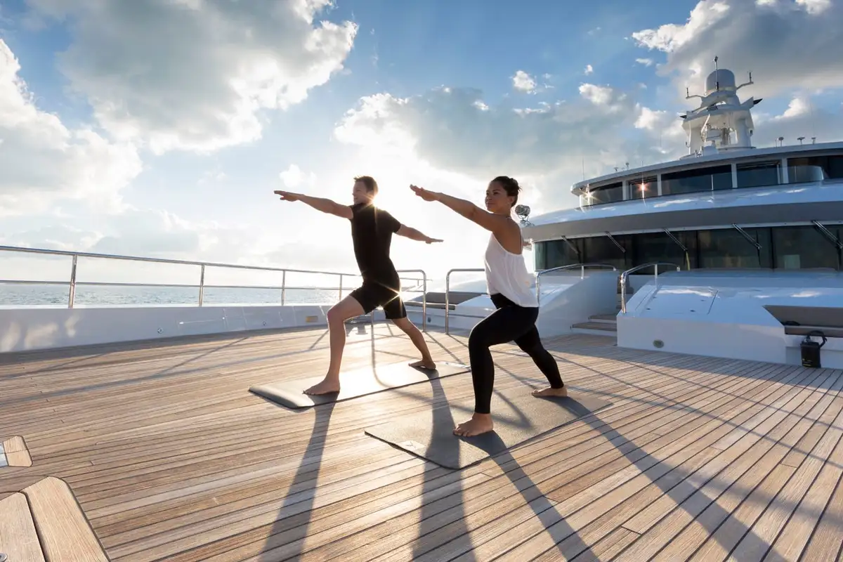 Start your morning by taking to the contraflow exercise swimming pool, then head to the nearby sun pads to enjoy a quiet cup of coffee before everyone convenes for a nourishing breakfast on the main deck aft.