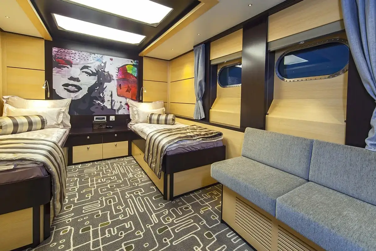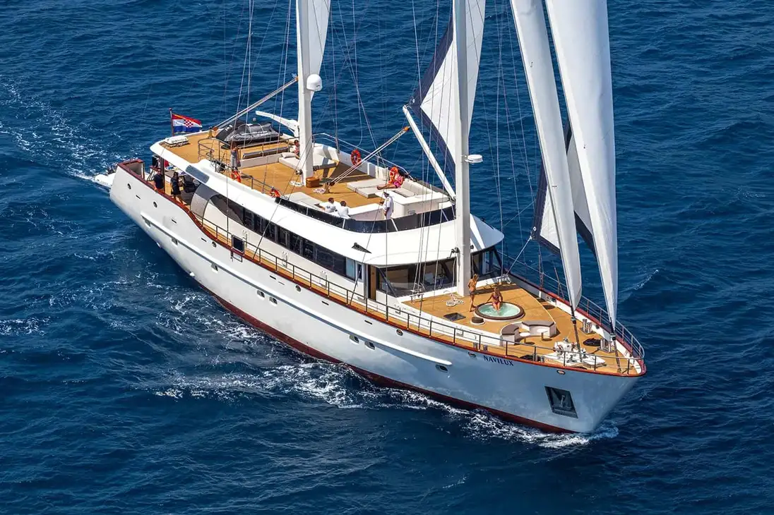 If you want the main deck lounge of a motor yacht with added sailpower, NAVILUX 37m (122ft) ticks that box and more. Designed, built and optimised specifically for luxury charter in the Adriatic Sea, this motorsailer can host up to 12 overnight guests in her six cabins. Unusually for a private charter vessel, all guest cabins are roughly the same size and offer the same level of luxury.