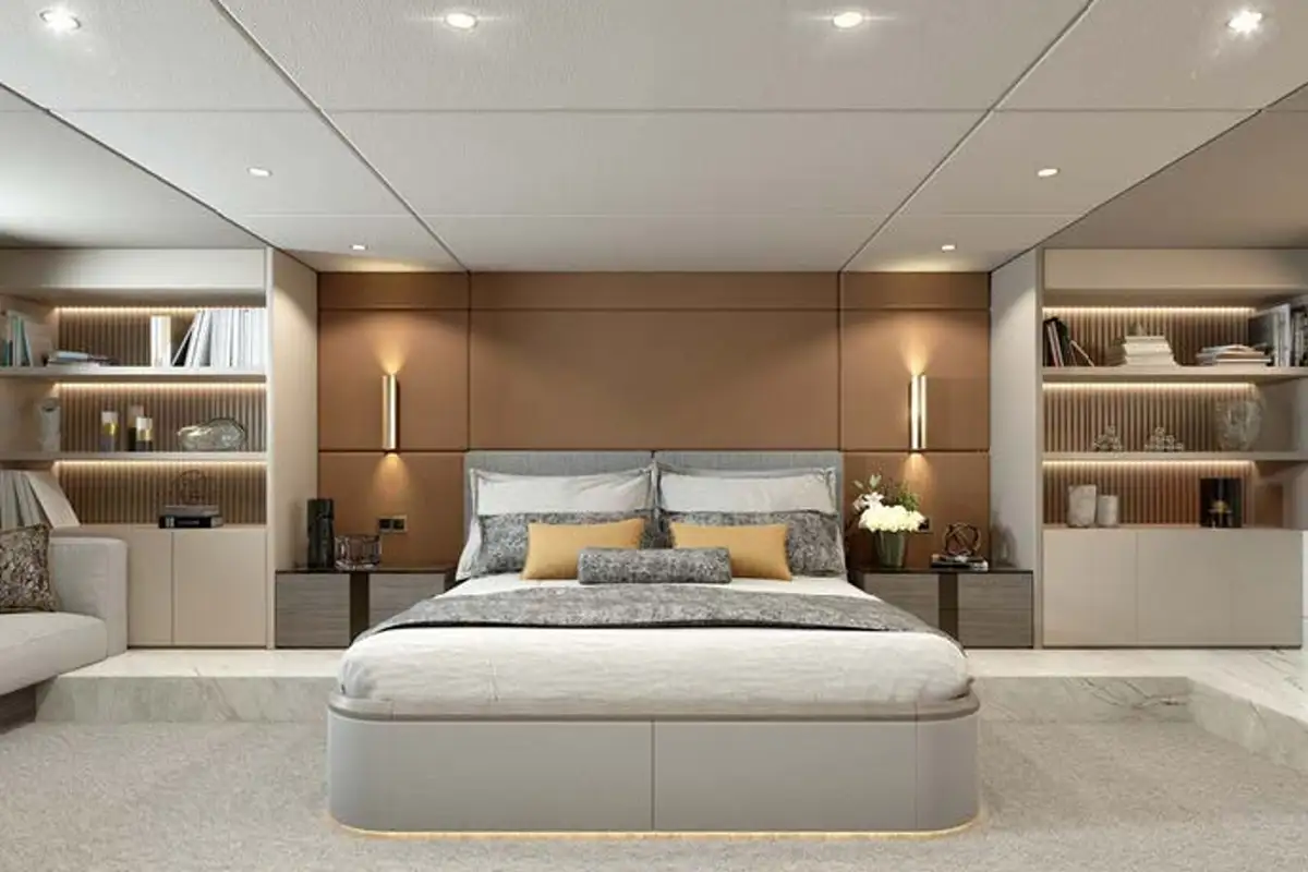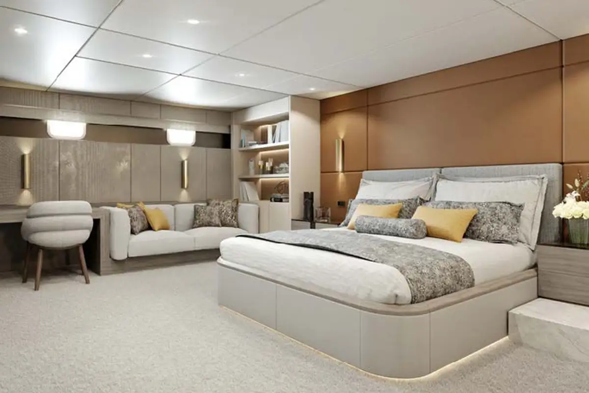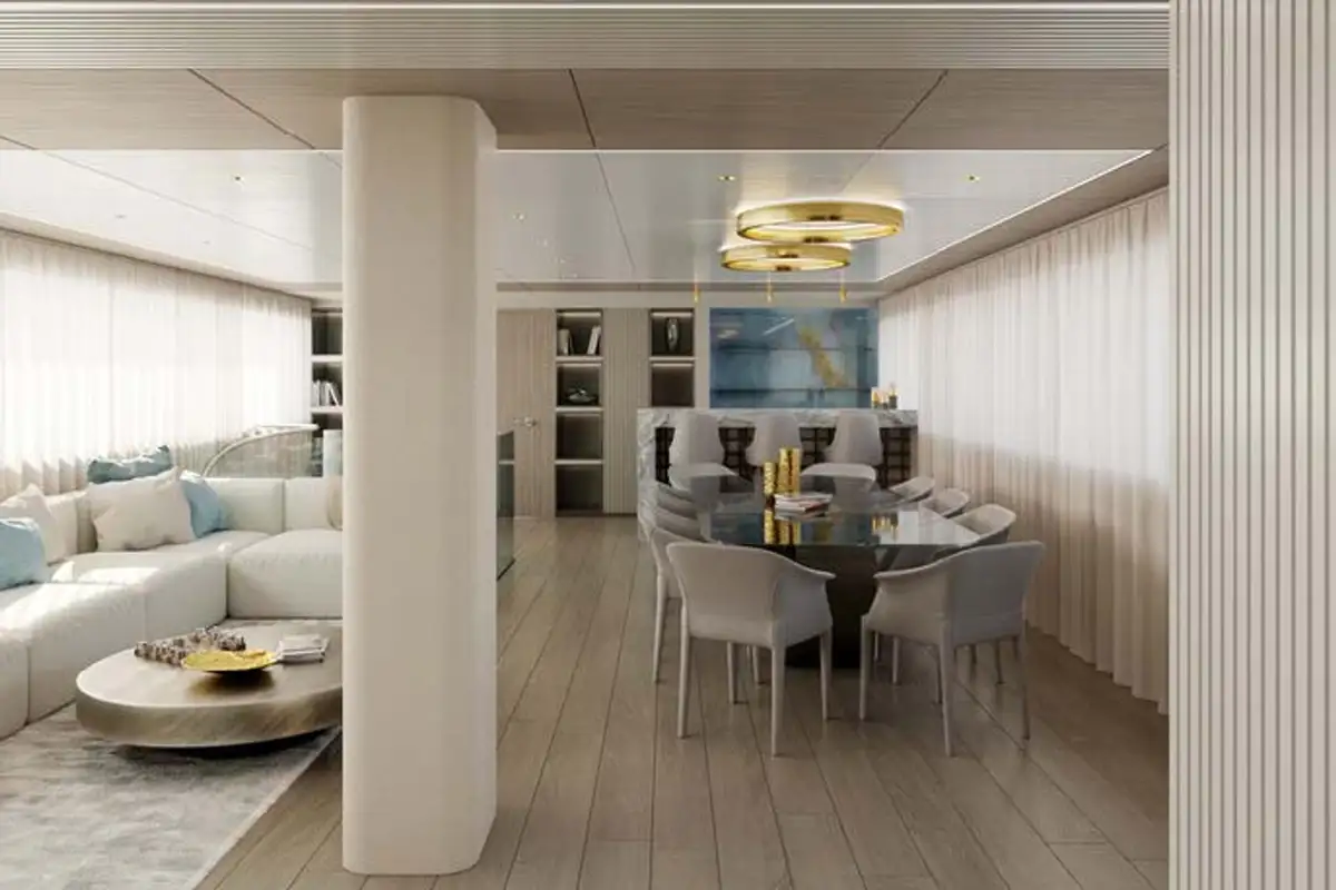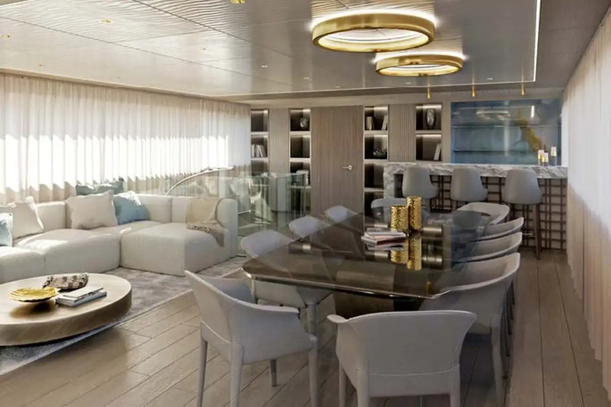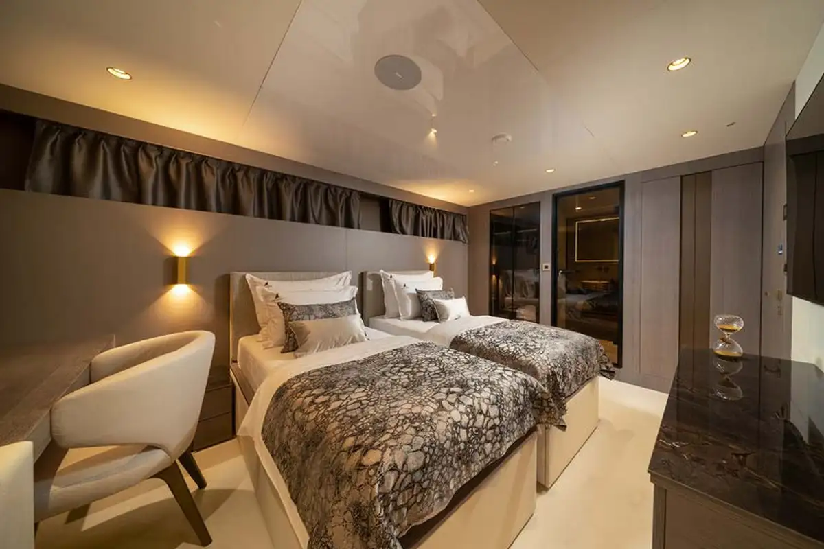 On the main deck is a large contemporary salon with a dining room, and there is also enough space in the living area where everyone can relax on the comfortable sofas and have fun with board games.