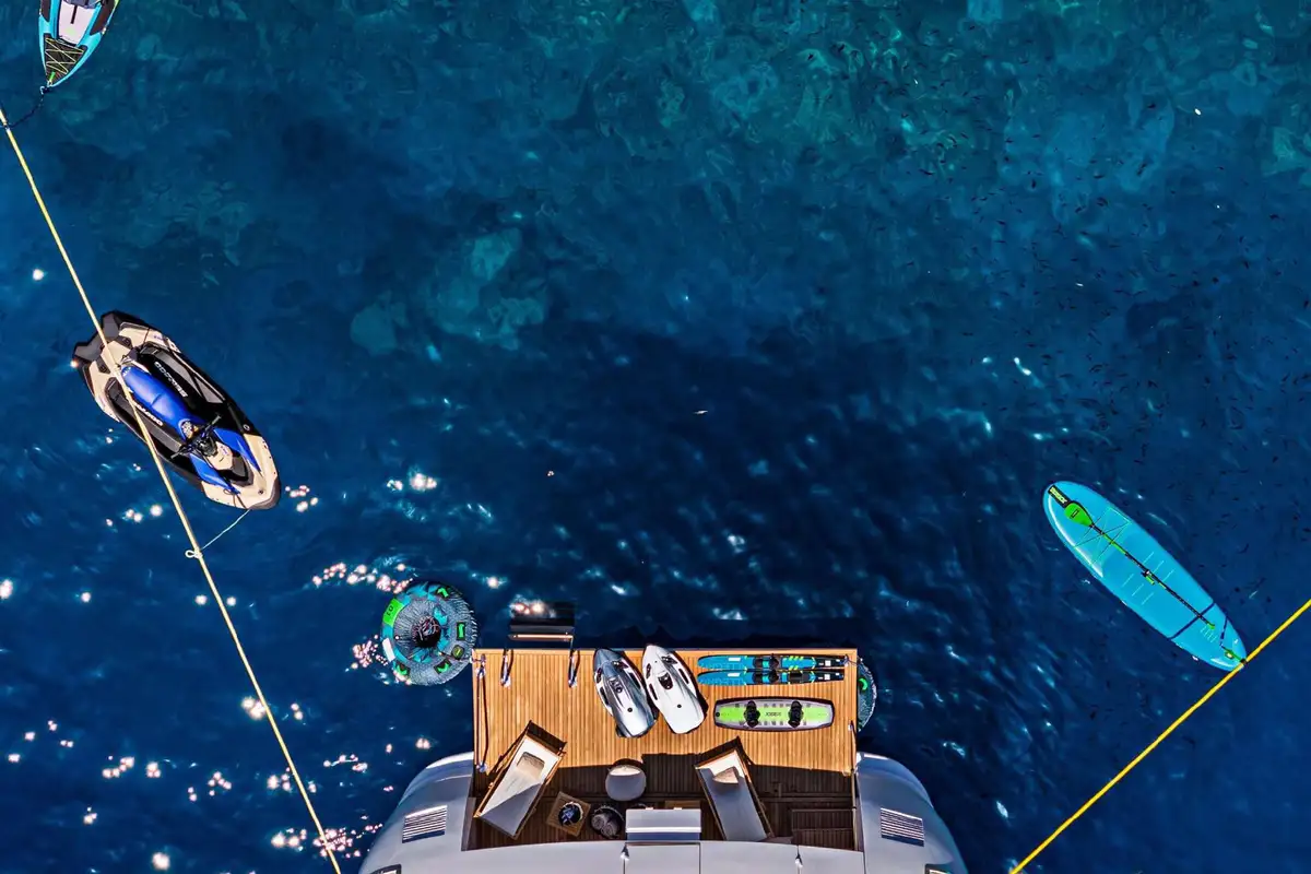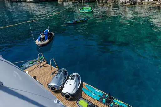 When it’s time for fun, NOVA’s extensive toy collection brings excitement to every anchorage. From high-speed jetski thrills to tranquil paddleboarding and kayaking, there’s something for every guest. Two brand-new SeaBobs, waterskis, wakeboards, towables, and a Novamarine tender round out the experience.