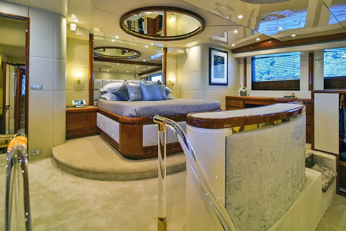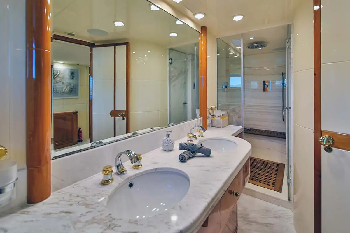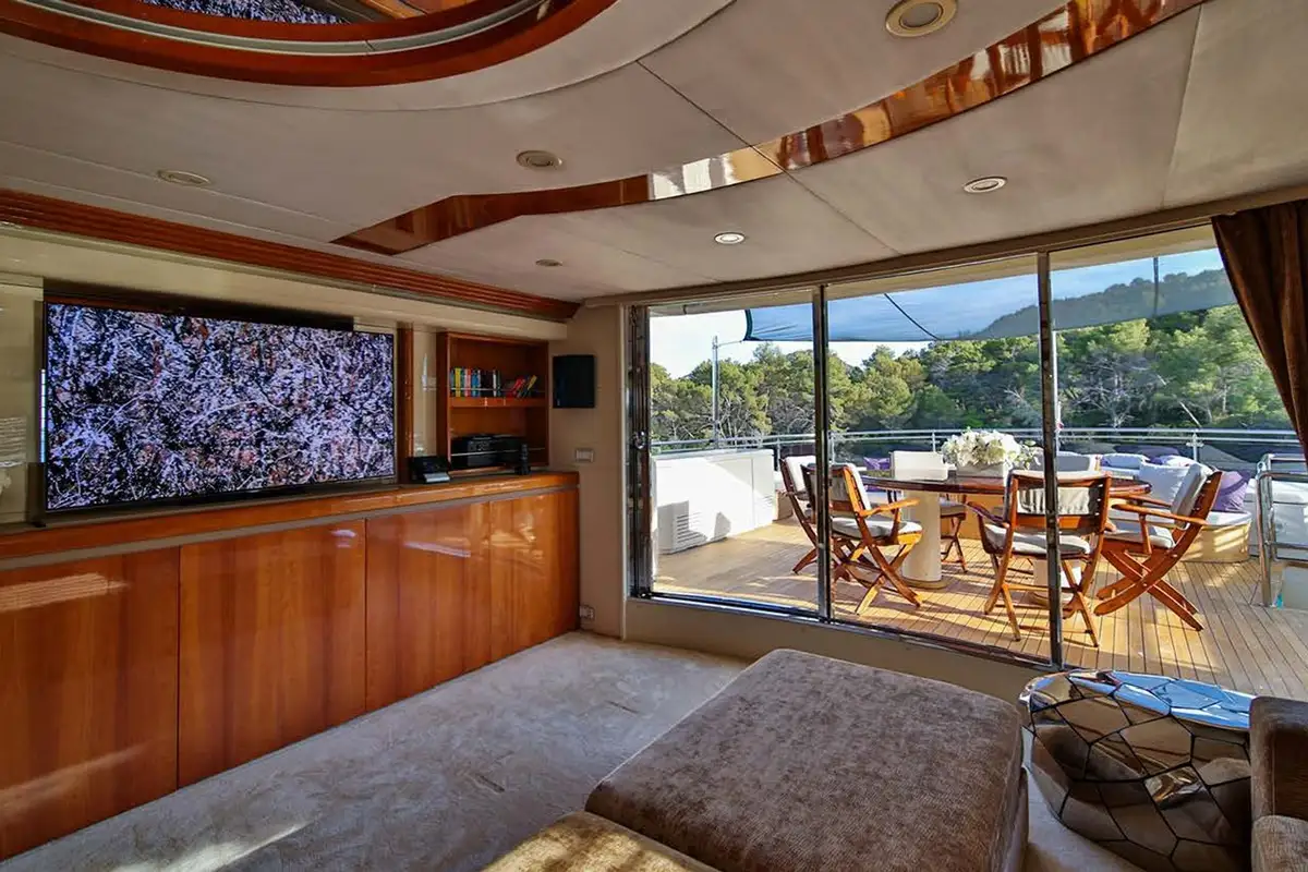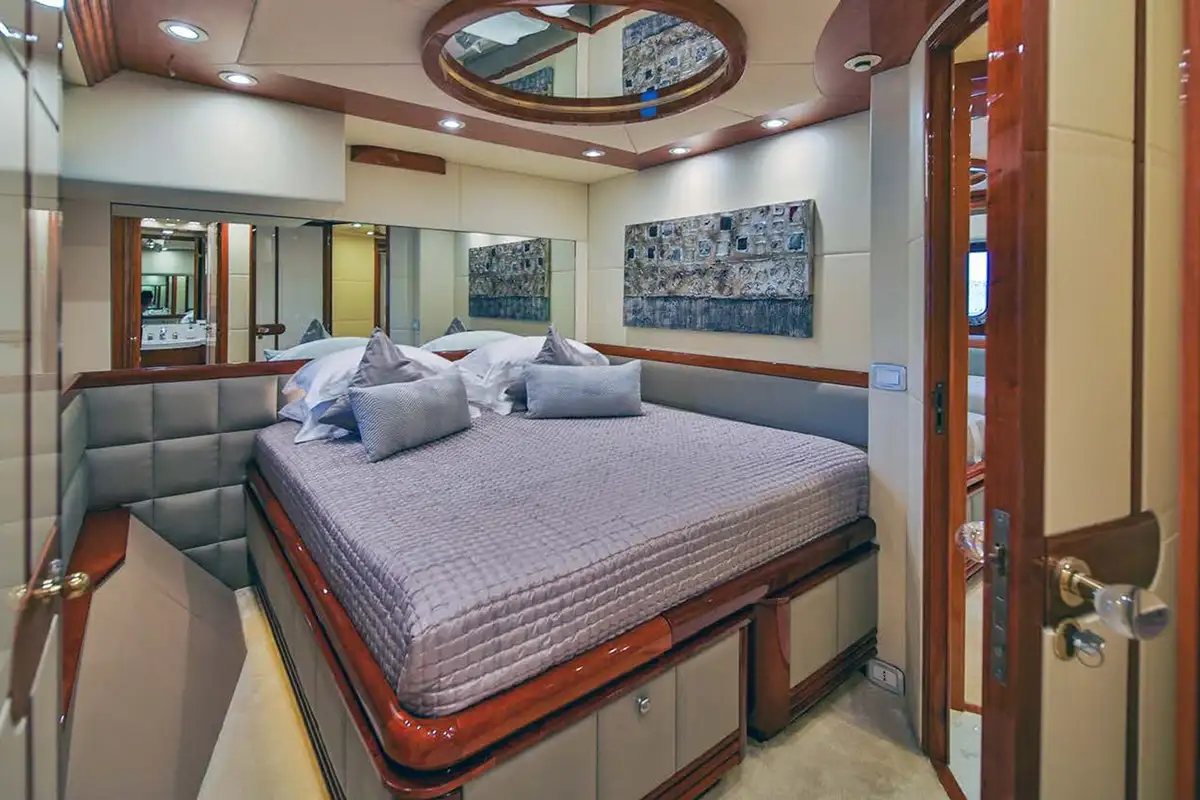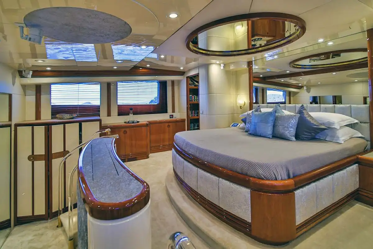 Able to welcome eight guests, Novela features four spacious cabins: the master, VIP and two twins which are able to convert to large doubles. The split level master is a particularly impressive space, with a private office and main cabin on one level and dressing room and ensuite down a level, all complemented by wide views across the water through oversized windows. Like the master, the VIP is also full beam and with beautiful views. All accommodation features modern entertainment systems and stylish décor. Her extremely versatile accommodation layout makes her perfect for two couples, families, or any other charter group.