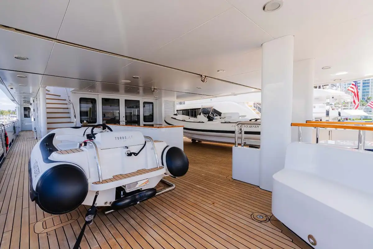 Built in steel and aluminium by Chinese yard Kingship Marine, OCEAN'S SEVEN is the fifth yacht from this yard to be designed by Vripack. A refit in 2014 saw her receive new decor throughout including designer Italian furnishings and Oriental artworks.
