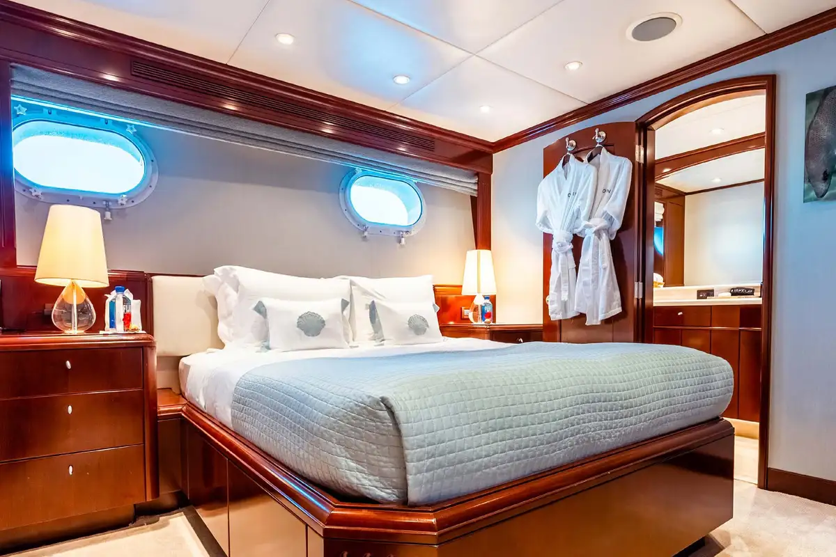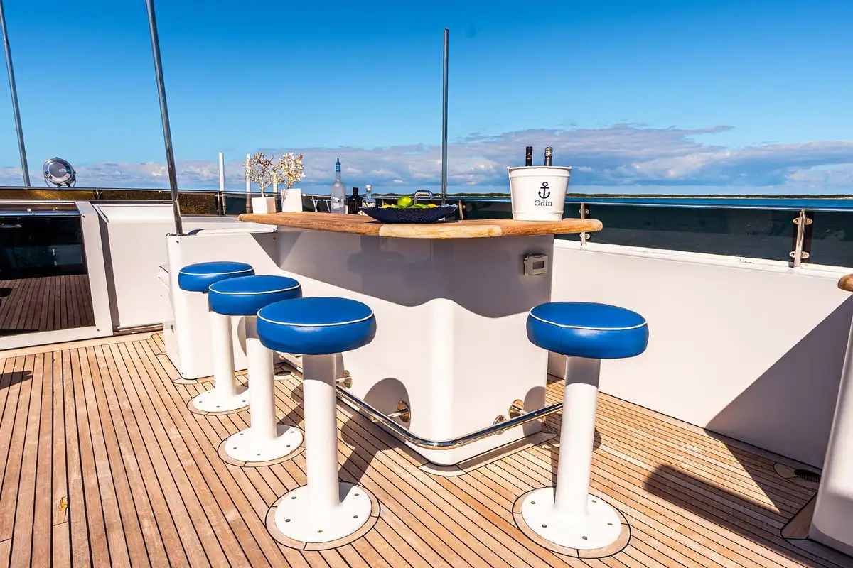 When it’s time to get out on the water, ODIN is well-equipped with a choice of watersports and toys. There are two PWCs, towable inflatables, snorkelling gear and a full beach set-up, including beach games. Or, if you’d rather stay close, why not try your hand at sports fishing from the lower cockpit?