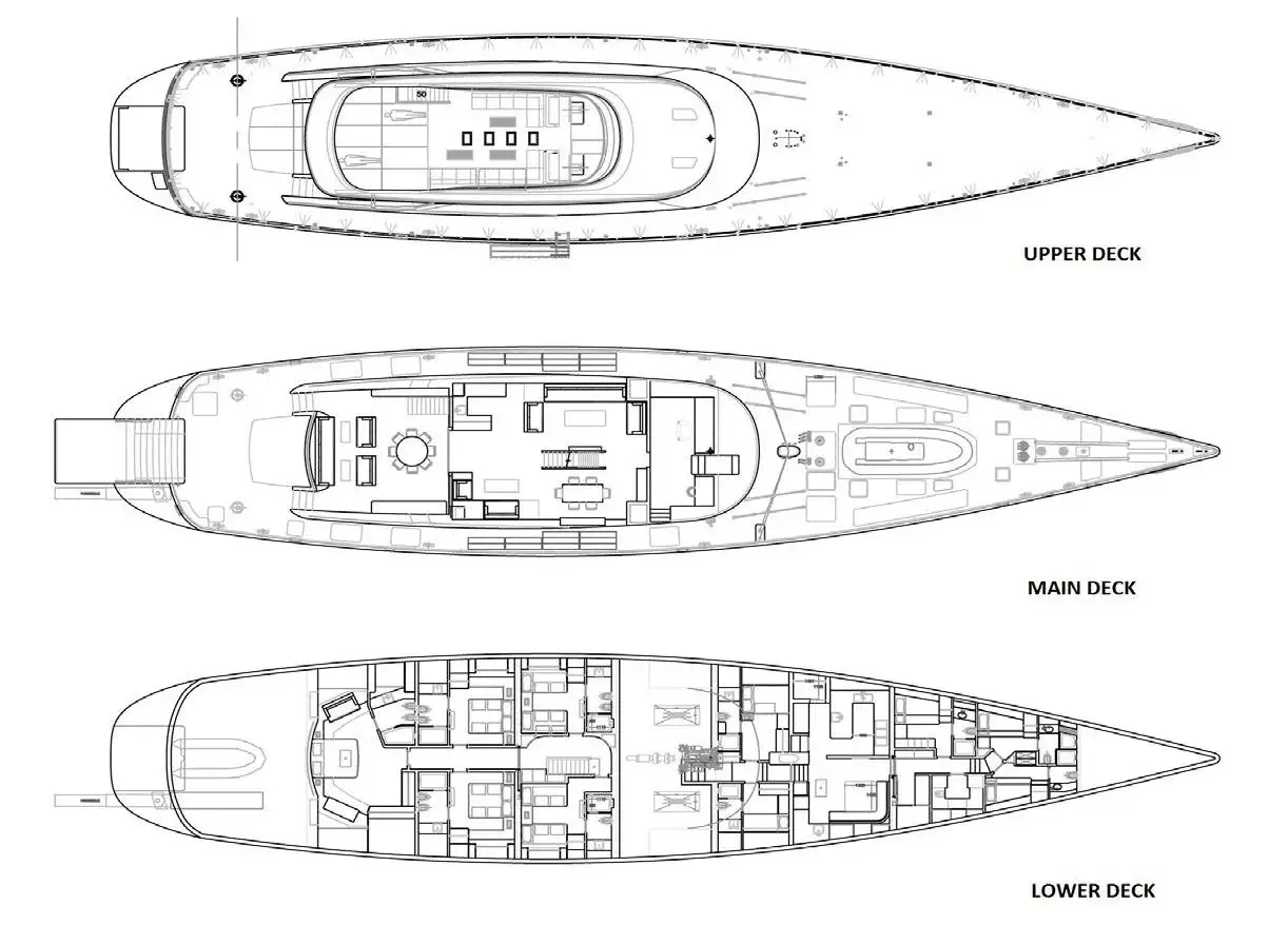 She has a vast expanse of deck space for guests to spread out and enjoy when the anchor goes down, with plenty of awnings for shade. She carries two tenders, one of which is an 11m (36ft) RIB for comfortable ship-to-shore transfers and beach landings, and her inventory of toys includes windsurfers, paddleboards, a dive compressor and gear, a wide range of waterski kit and more.