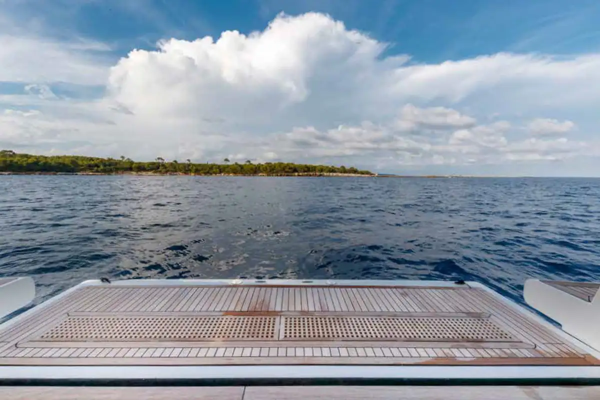 O'LION's exterior decks are crafted for both relaxation and entertainment. The expansive sundeck features a jacuzzi, full-service bar, barbecue, and ample sun loungers—perfect for soaking up the sun or enjoying alfresco dining under the stars. The upper deck boasts a large dining table for twelve, complemented by built-in seating for after-dinner conversations. At the stern, a fold-down beach club provides direct access to the sea, creating an inviting space for sunbathing or launching water toys.