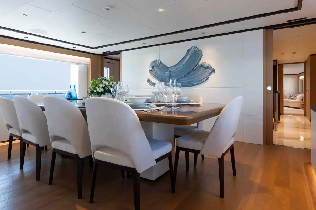 This yacht reaches a maximum speed of 20 knots and cruises comfortably at 12 knots, with electric fin stabilisers for added comfort. So whether cruising to the next destination or enjoying an afternoon at anchor, OLIVIA ensures a smooth and enjoyable ride.