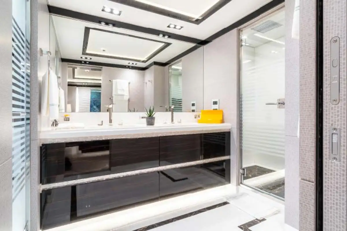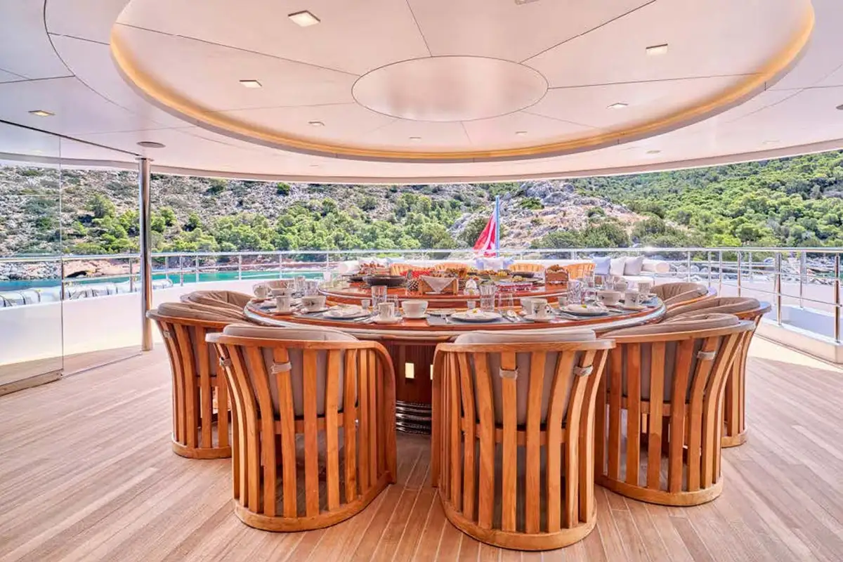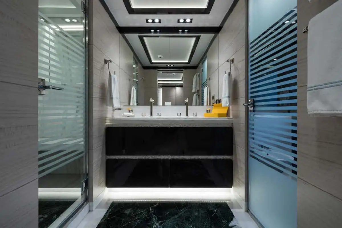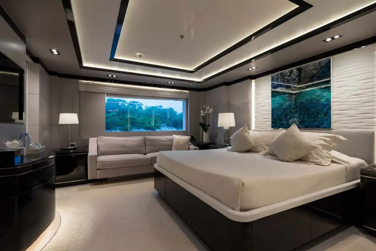 O’PTASIA offers 10 versatile guest cabins for up to 12 guests, including a breathtaking master suite with private office and walk-in wardrobe, and a full-beam VIP with its own cinema. Eight further doubles and twins ensure space and privacy for every guest, all enhanced by floor-to-ceiling windows that frame extraordinary views. With interiors styled in warm, contemporary tones accented by modern art, the atmosphere is both elegant and welcoming.