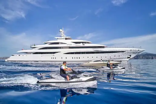 Afternoons bring adventure, with a garage full of watertoys including jetskis, wakeboards, SeaBobs, and inflatables for you and your guests to find fun on the water. A hydraulic swim ladder makes access easy, while those looking for quiet time can retreat to the sky lounge cinema or relax on deck with a book, podcast or music and enjoy uninterrupted views of the anchorage.