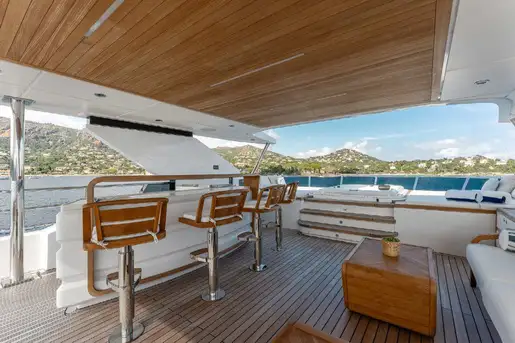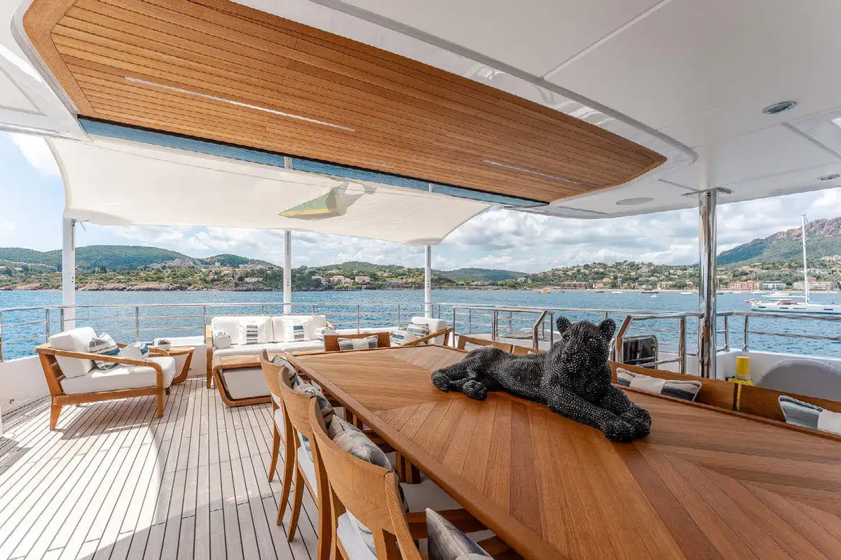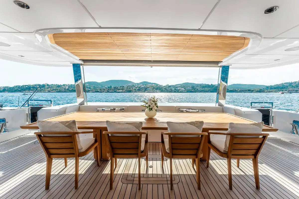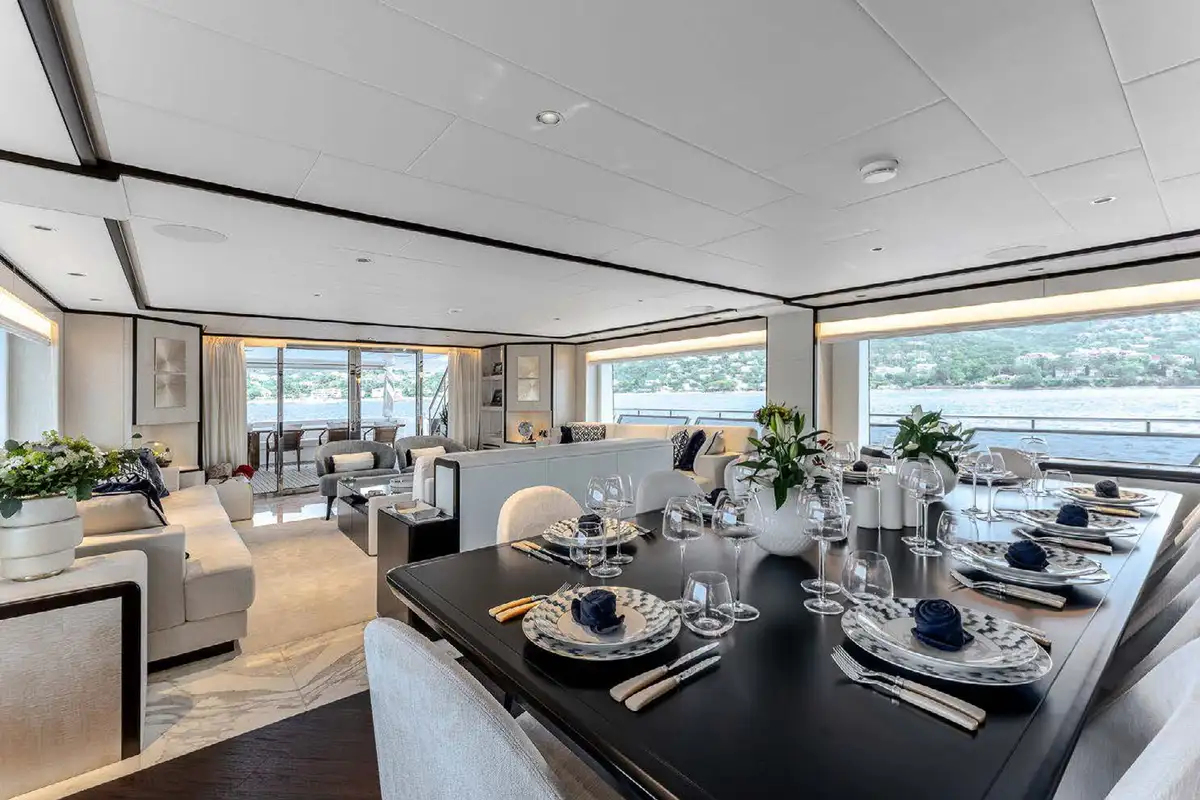 Her charter-savvy crew of eight is dedicated to delivering exceptional service, creating a relaxed yet polished atmosphere throughout. Dining is a highlight on board, with versatile settings for every occasion, Whether this is formal dinners in the main deck lounge, casual feasts on the sun deck, or waterside lunches at the beach club, OPTIMISM has a fantastic selection of options for every occasion.