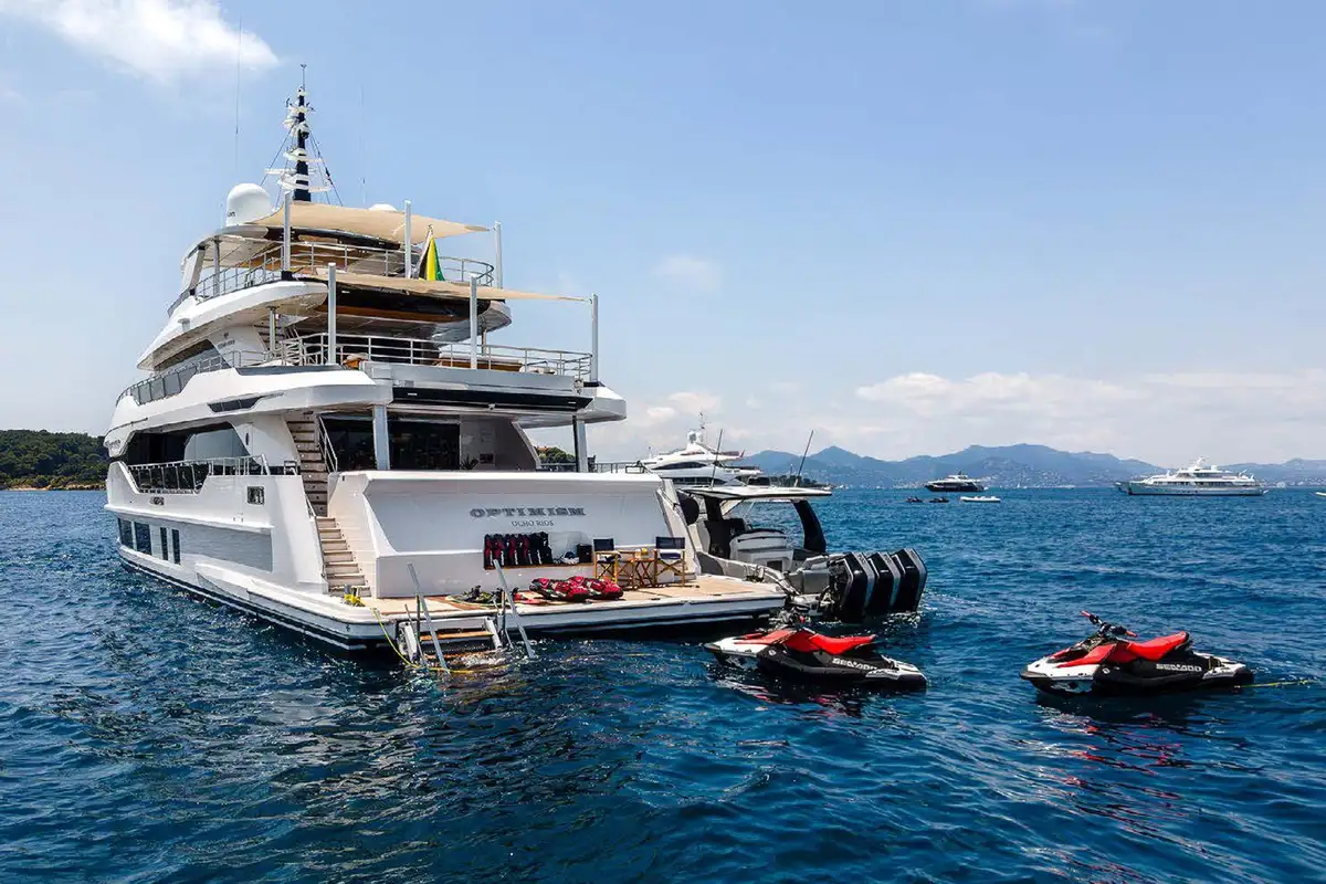 Delivered in 2023, the 37m Gulf Craft yacht OPTIMISM is a sleek, contemporary tri-deck superyacht designed with guest enjoyment at its heart. Showcasing intelligent use of exterior space, she offers a seamless connection to the sea and an abundance of lounging and dining options across every deck. Her expansive beach club provides direct access to the water, while her sun deck jacuzzi and al fresco lounges make her a superb choice for Mediterranean cruising and beyond.