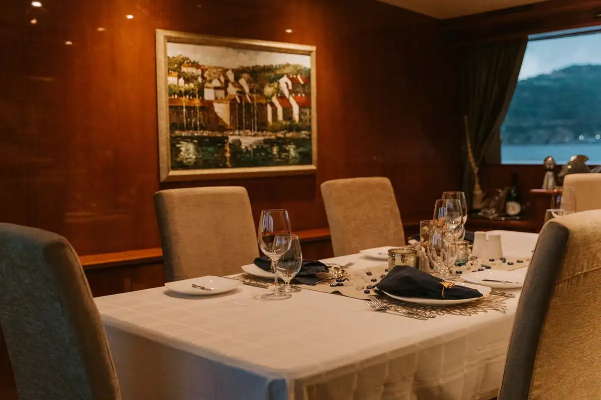 Another restaurant with its own marina – just a quick call from your charter team on the VHF and you'll be ready to enjoy a unique yacht charter experience from this New England beach house-style dining room on the water.
