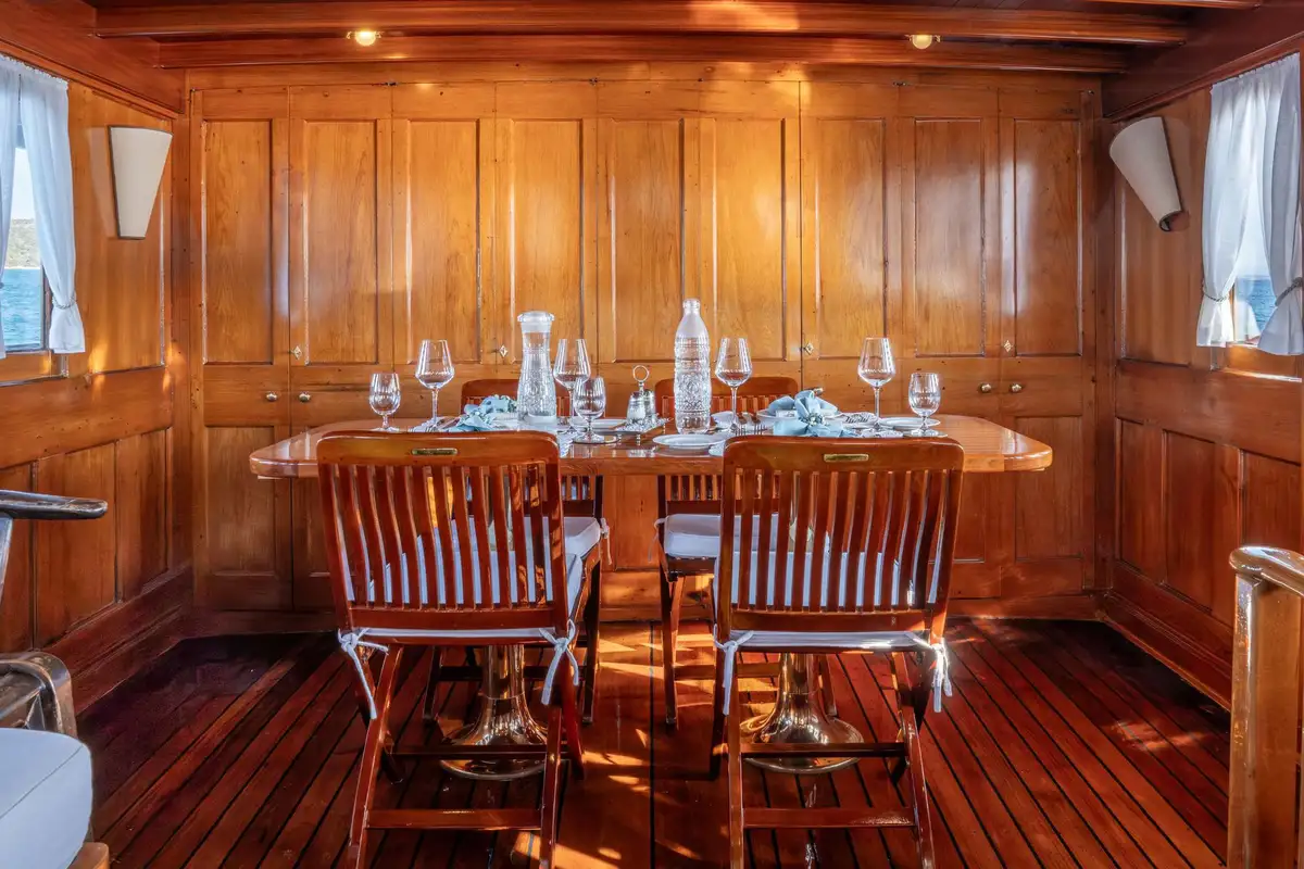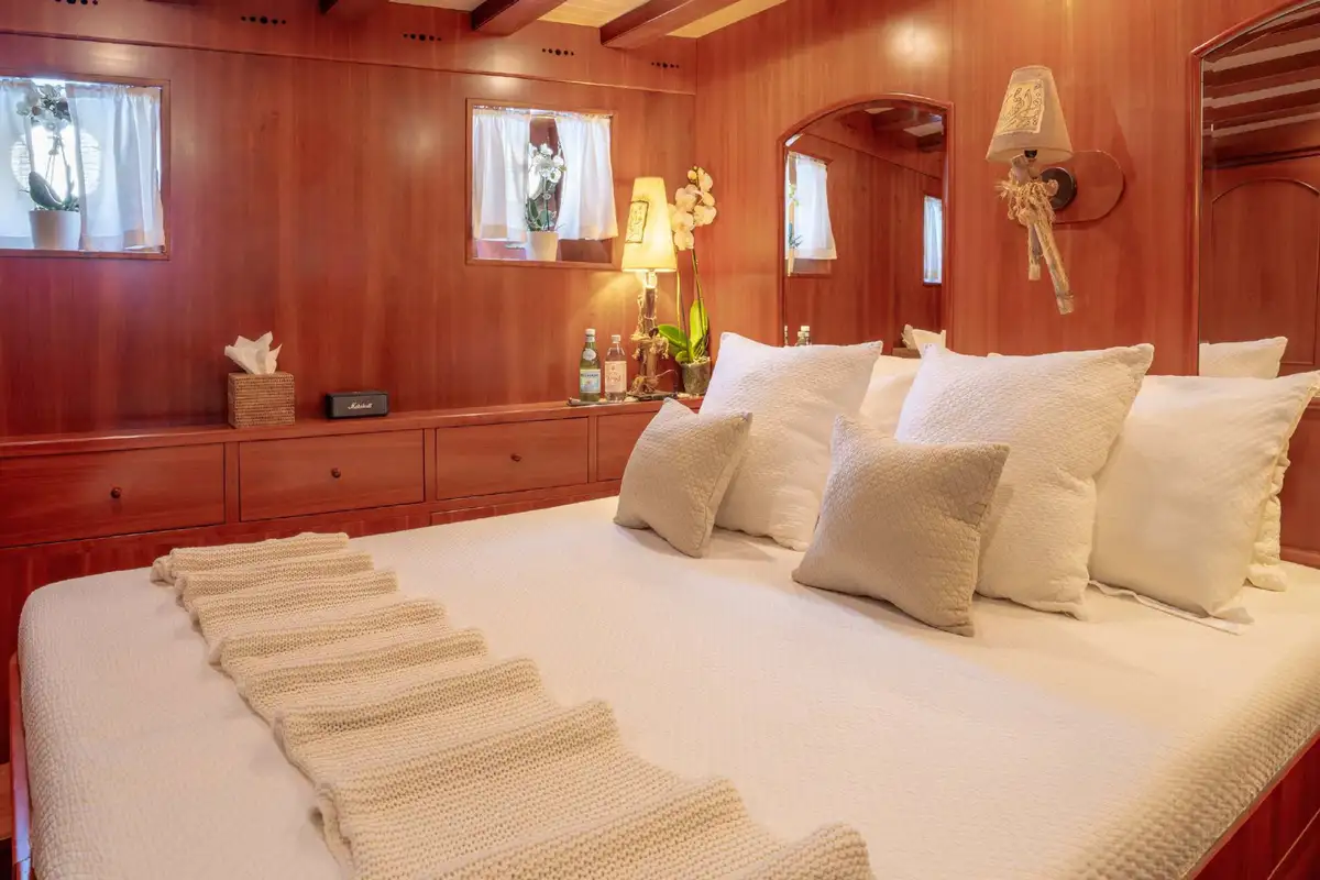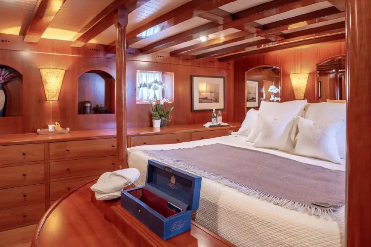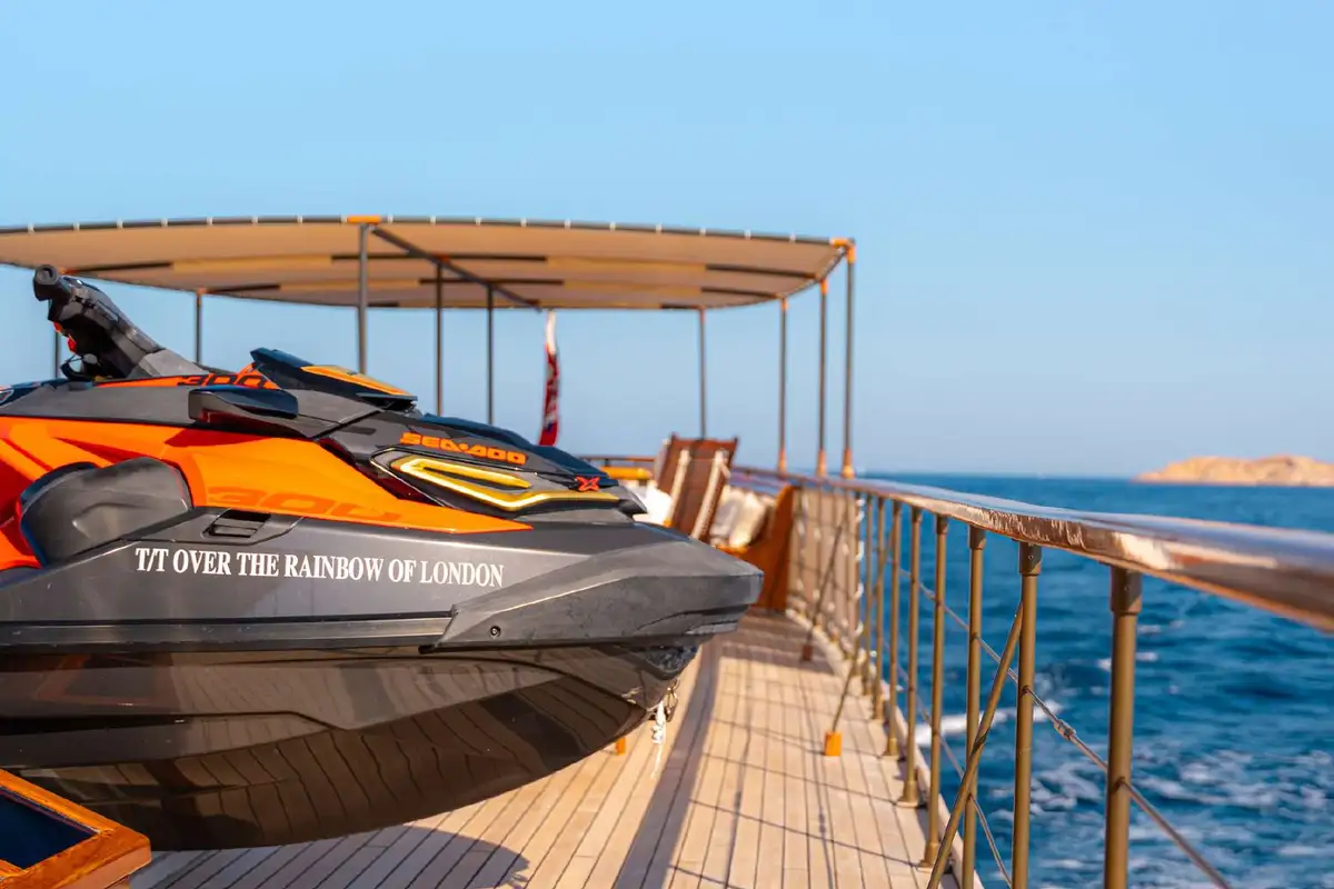 In December 2017, the current owner fell for her beautiful lines and has since undertaken further refits. The cabin set-up was made convertible and the galley was improved to cater to sophisticated charter guests. All wood was overhauled and strengthened, using traditional methods. OVER THE RAINBOW OF LONDON now looks better than ever, inside and outside. Fitted with latest navigation and safety equipment and manned by an extremely passionate crew, she is in peak condition for charter.