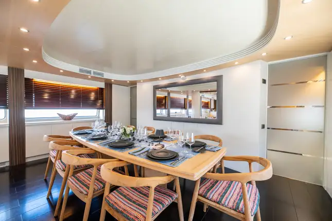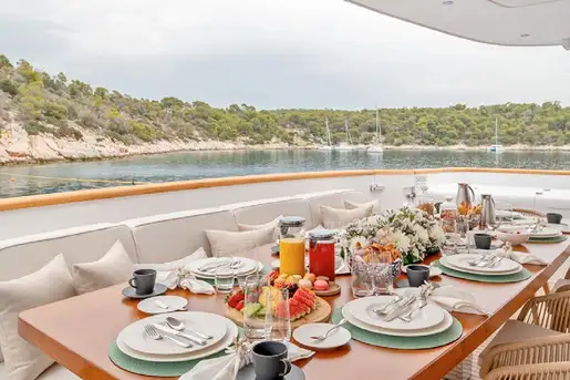 On deck, indulge in al fresco dining under the stars, unwind in the jacuzzi, or simply soak up the sun on one of her many lounging areas. Every detail aboard PAREAKI II has been designed to enhance comfort, elevate experiences, and deliver an unforgettable charter journey.