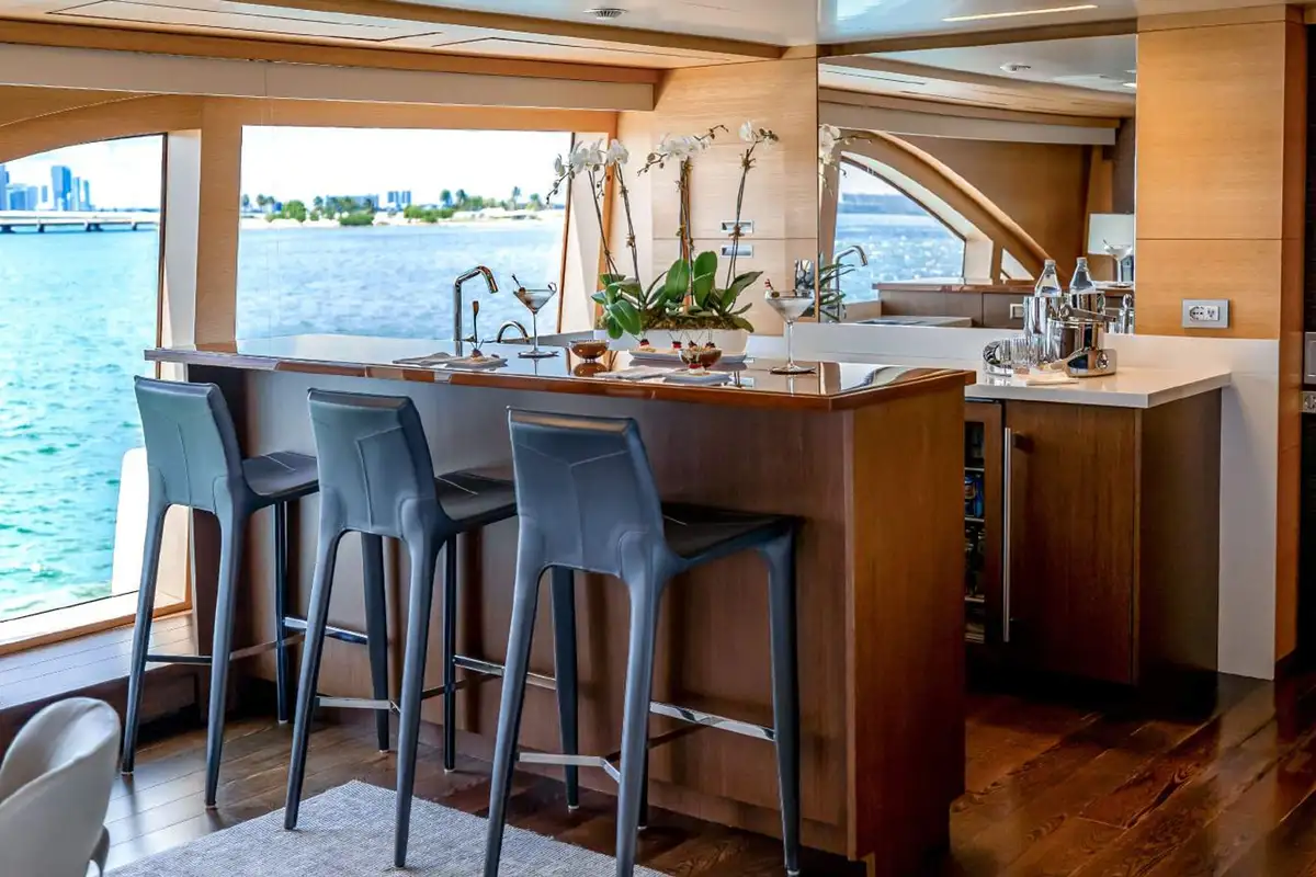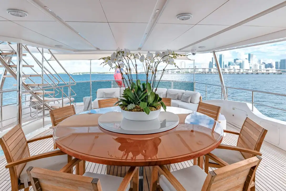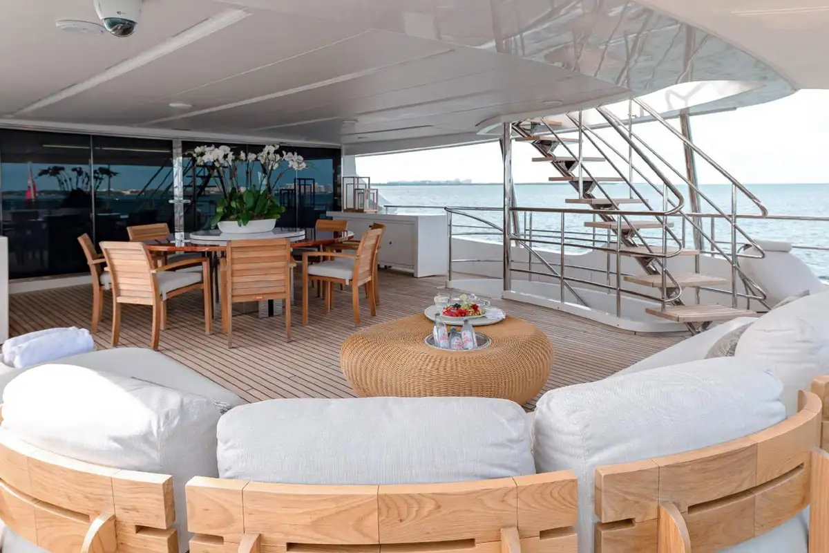 She is the perfect platform for entertaining and relaxing, with expansive exterior space and two on-deck Jacuzzis – one on the sun deck and one at the bow, which is unheard of for a yacht of this size. With multiple areas for formal and informal dining, sunbathing and relaxing, or having drinks with close friends, the possibilities are endless on PATIENCE with her versatile layout.