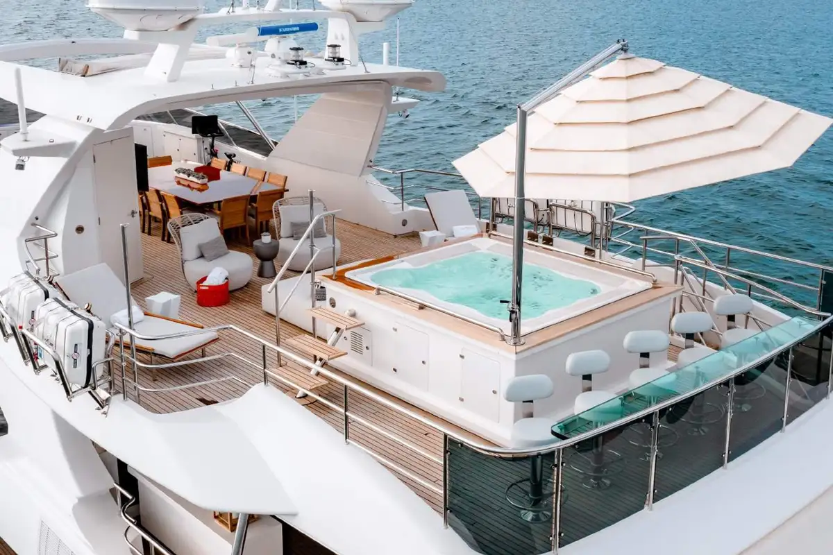 - Two jacuzzis on board, one on the foredeck and one on the sun deck