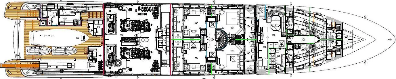 MYSKY welcomes up to 12 guests in five spectacular cabins: a full beam main deck master with its own study and private balcony, plus two double cabins and two twin cabins on the lower deck, with an additional berth in each twin cabin.