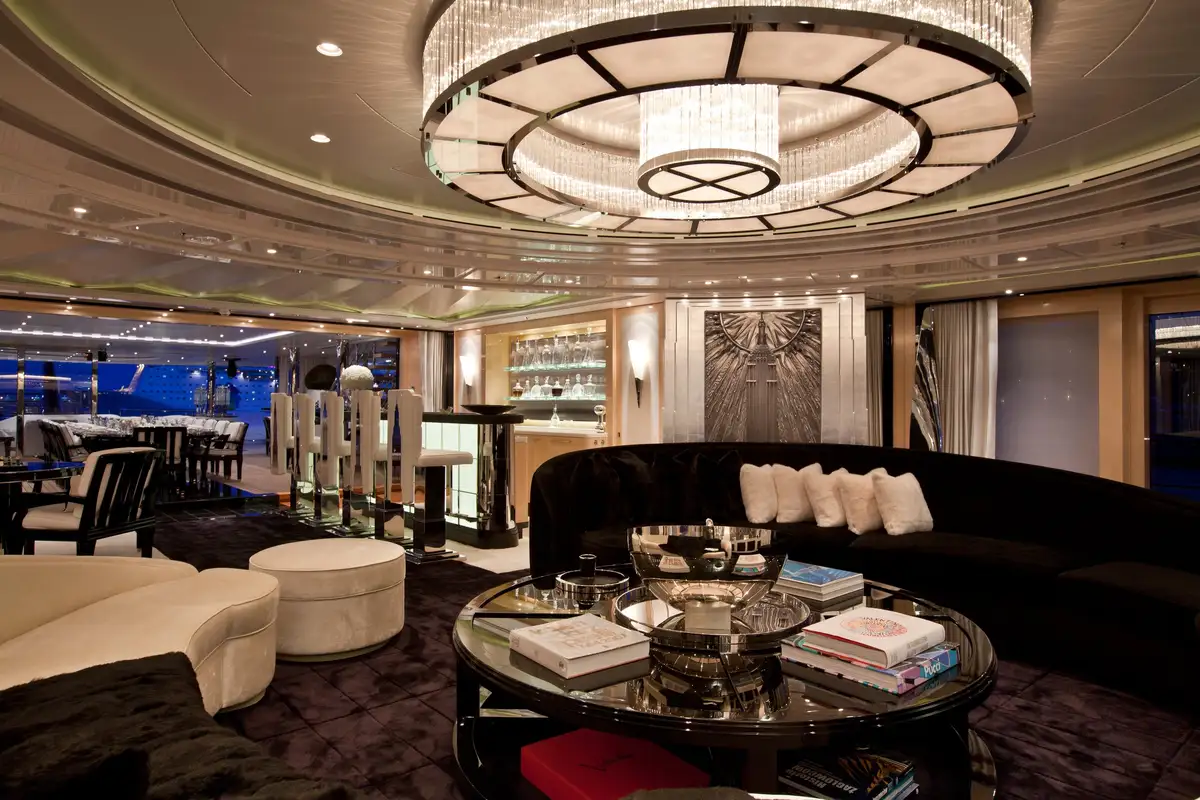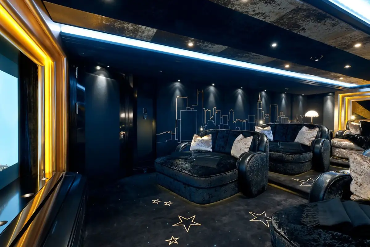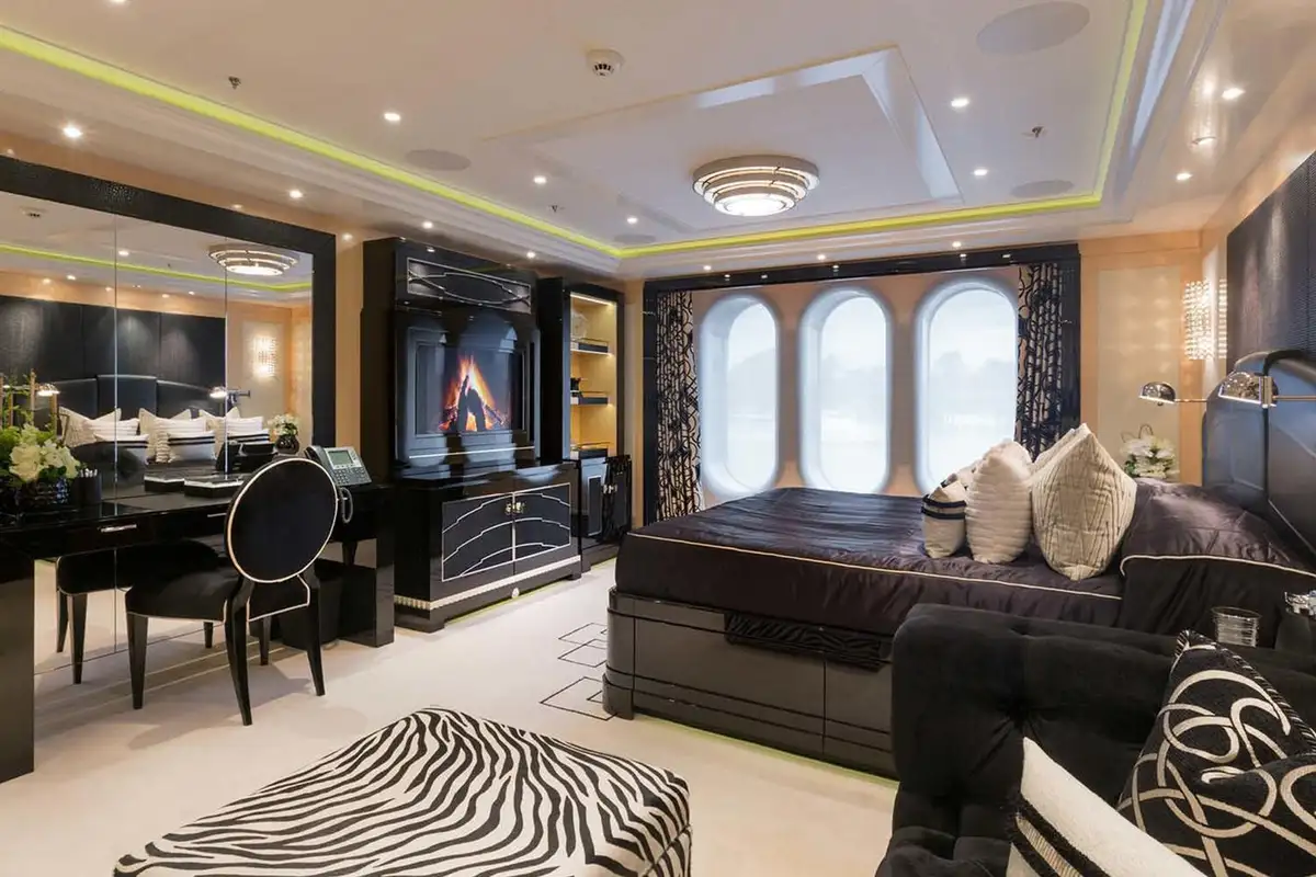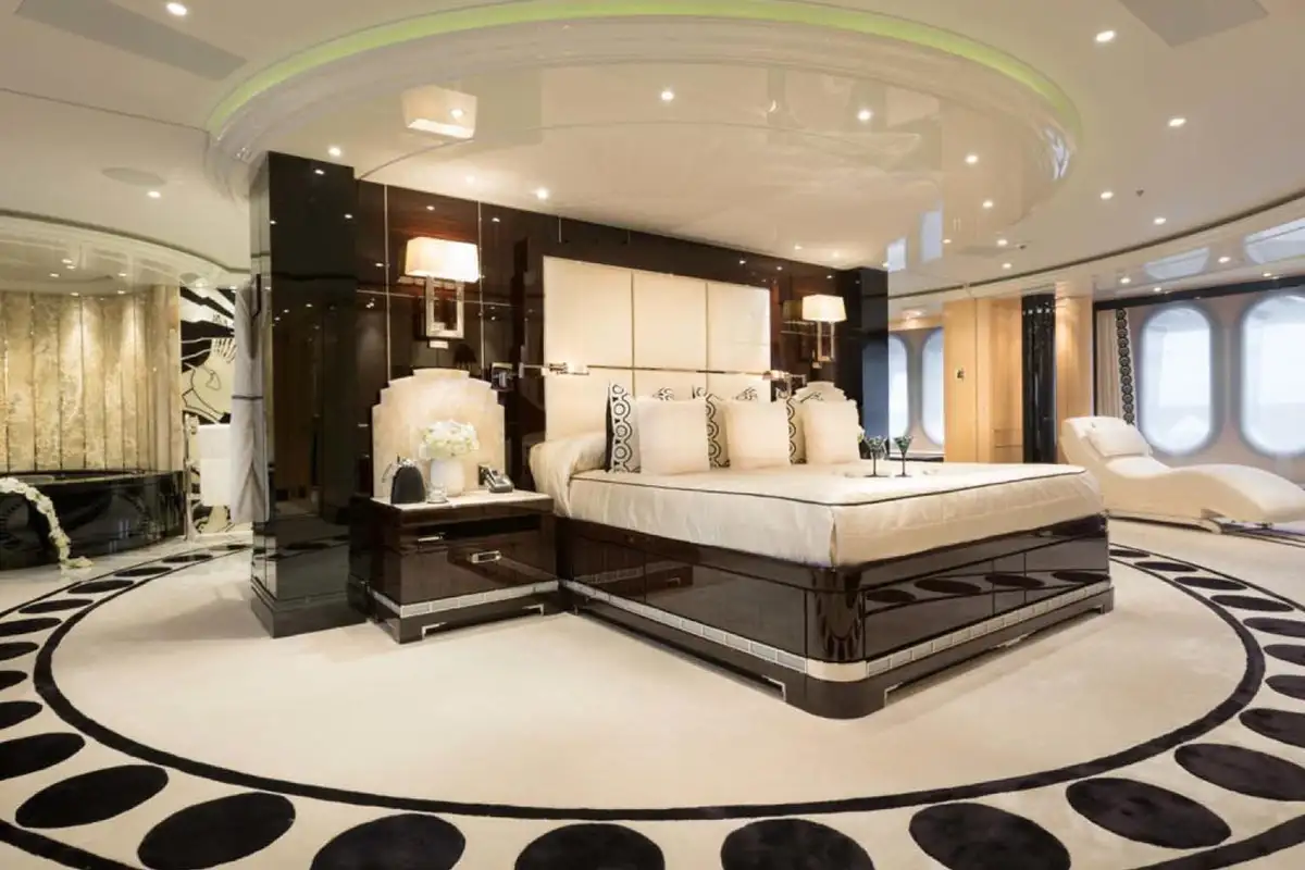 Follow dinner with a movie night in the Radio City Music Hall-style cinema room, with tiered comfortable seating and New York skyscrapers decorating the walls. And when it’s time for bed, the split-level duplex master suite beckons. Located on the main deck, a private glass staircase connects the accommodation to the observation lounge with 180-degree views over the bow and access to a private terrace with spa pool.