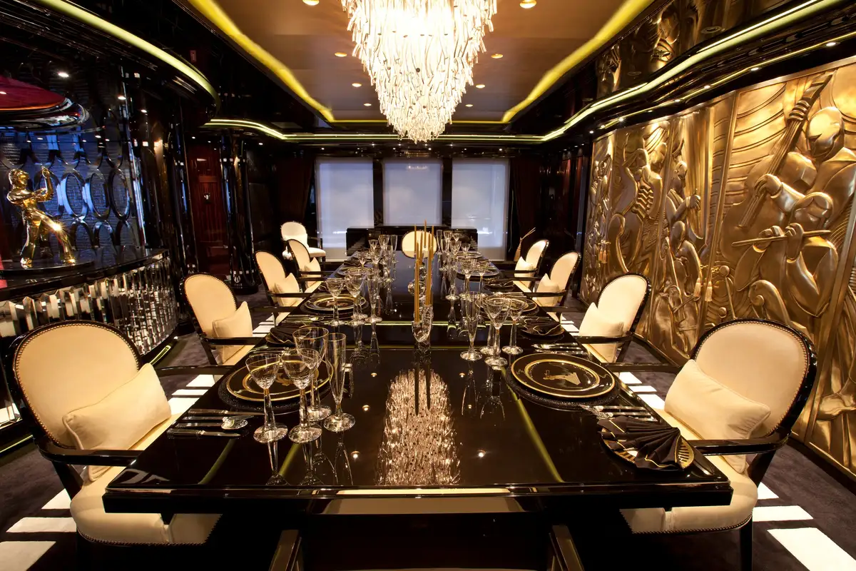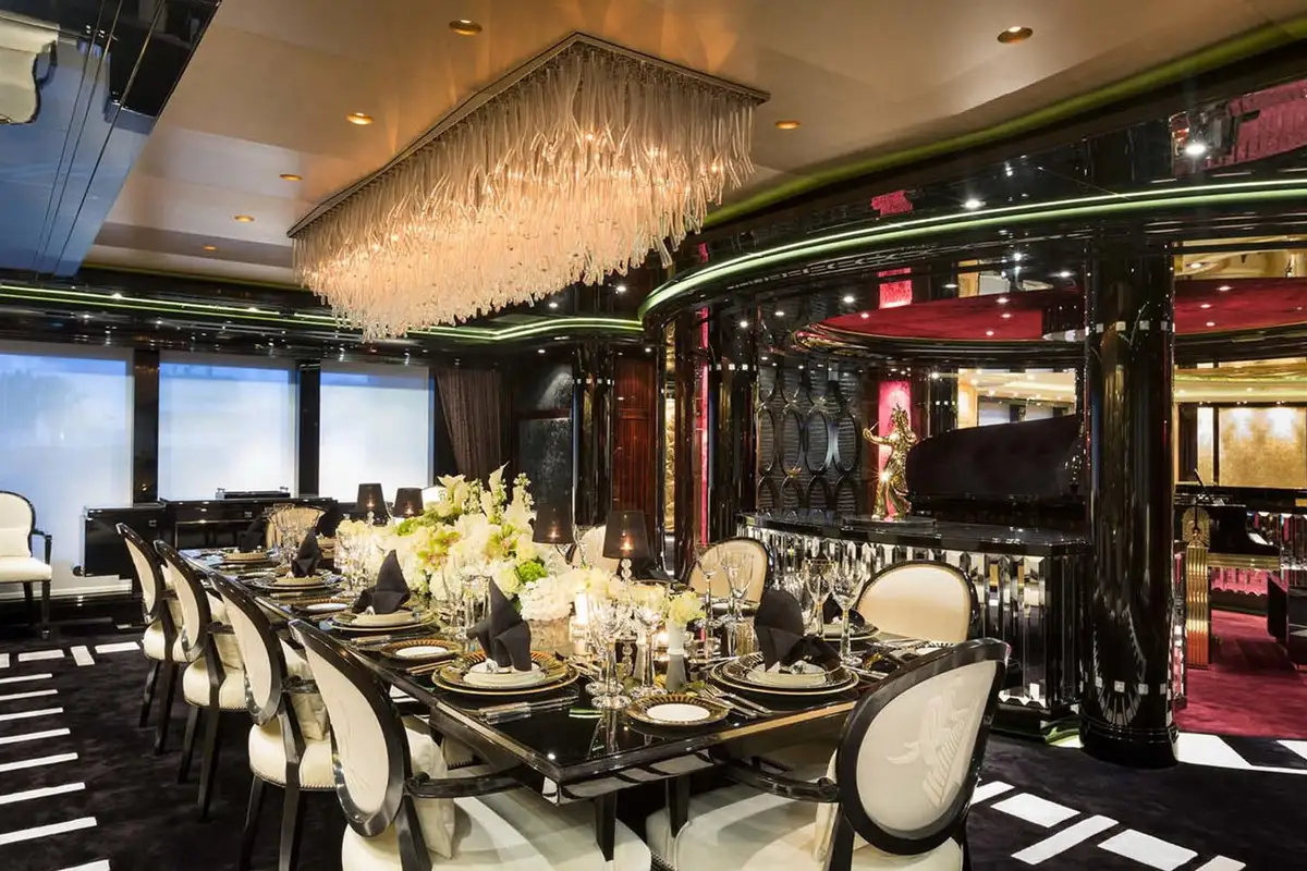 Evening time is when PHOENIX2 comes into her own. Head to the Art Deco skylounge bar, reminiscent of a glamorous 1930s style Manhattan club, to sip a martini accompanied by the self-playing Steinway piano. Step through to the winter garden dining area, where a stunning tablescape accompanies delicious cuisine prepared by the Michelin-star trained chef.