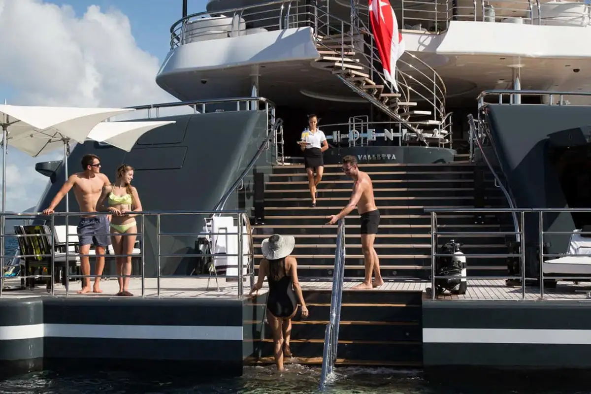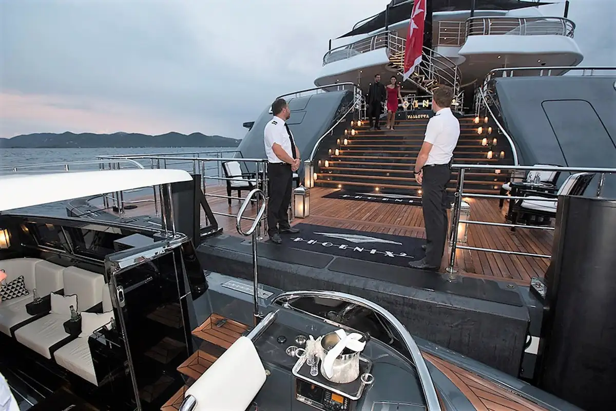 Once settled on board, relax on the sun deck with a large jacuzzi and pool surrounded by sun pads, before enjoying a long, lazy lunch in the winter garden. Come the afternoon, it’s time to play on the yacht’s watertoys, under the crew's expert guidance. Late afternoon you can work out in the gym, with views over the helideck as your captain steers PHOENIX2 to your next anchorage. For a slower pace, step out onto the large beach club for a sunset yoga session or simply head for the spa with a sauna, Turkish bath, and massage room, where you can relax with a treatment from the onboard masseuse. Refreshed and revived, head to the beauty salon and prepare for the evening ahead.