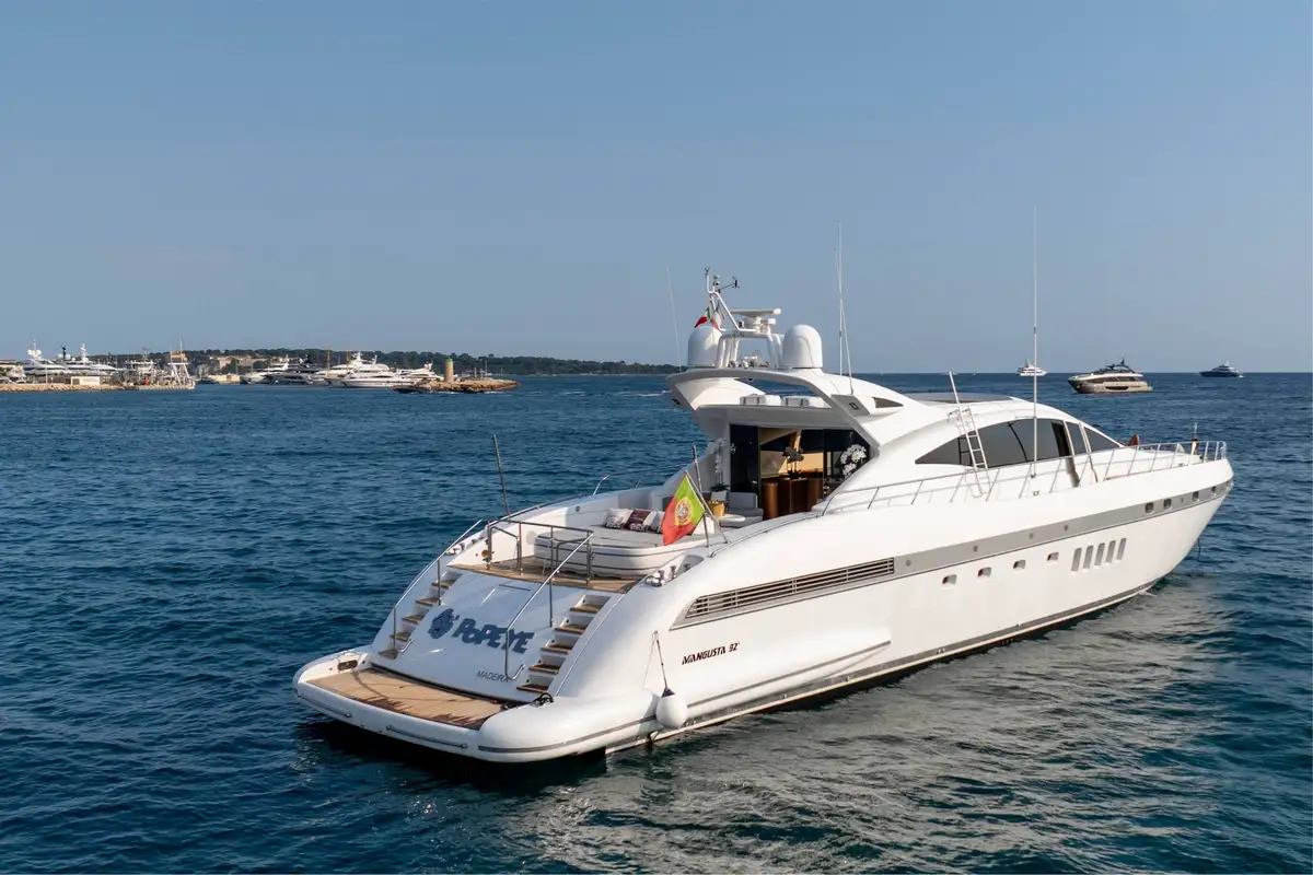 POPEYE is a sleek and stylish 28.3m Mangusta motor yacht that delivers high-performance cruising wrapped in classic Italian design. With a top speed of 35 knots and a comfortable cruising speed of 25 knots, she’s built for guests who appreciate both speed and sophistication on the water. Whether you’re island-hopping along the Côte d’Azur or exploring hidden Mediterranean bays, POPEYE promises exhilarating passage-making in consummate style.