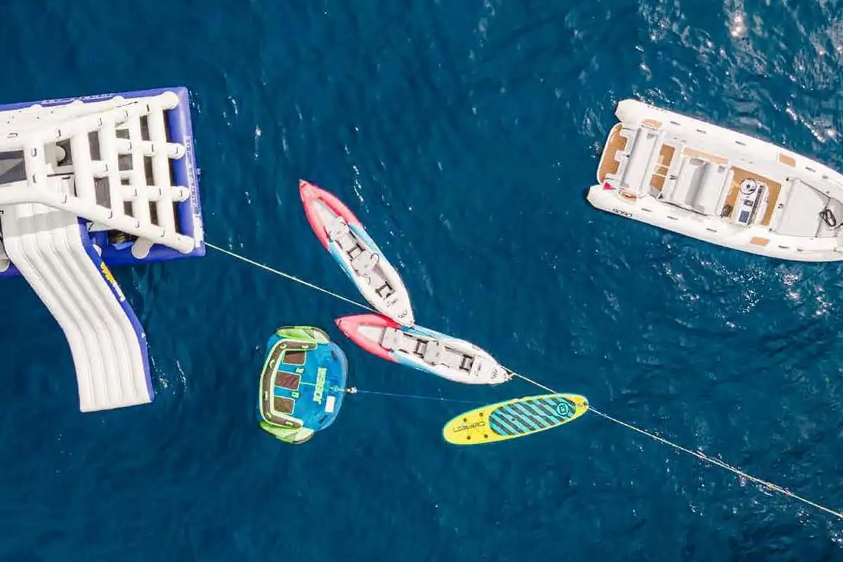 PREMURA carries an extensive selection of watersports equipment, including a 11.6m (38ft) Fjord chase boat for swift transfers. You’ll also find Sea-Doos, SeaBobs, paddleboards, kayaks, skis, snorkelling gear and a dive compressor (for rendezvous diving). Whether you want to explore, relax or play, everything you need is on board PREMURA.