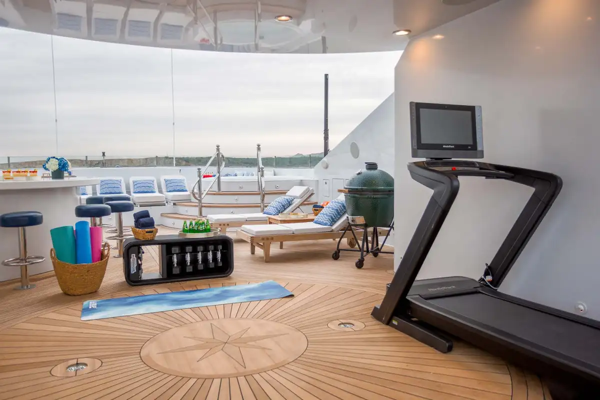 Her sun deck has been improved, too, with a new jacuzzi and sun loungers. You can relax in the bar area or destress with the exercise equipment. Those wanting more adventure can delve into PURPOSE’s toy box, drop from the sun deck to the water on the 9.1m (30ft) waterslide or try your hand at eFoiling. There are also five PWCs, two SUPs, two SeaBobs, kayaks and a host of towable inflatables, boards and skis to make the most of. Those wanting to explore on land can be whisked at speed on the 9.75m (32ft) Intrepid tender and easily cover ground on the two E-bikes.