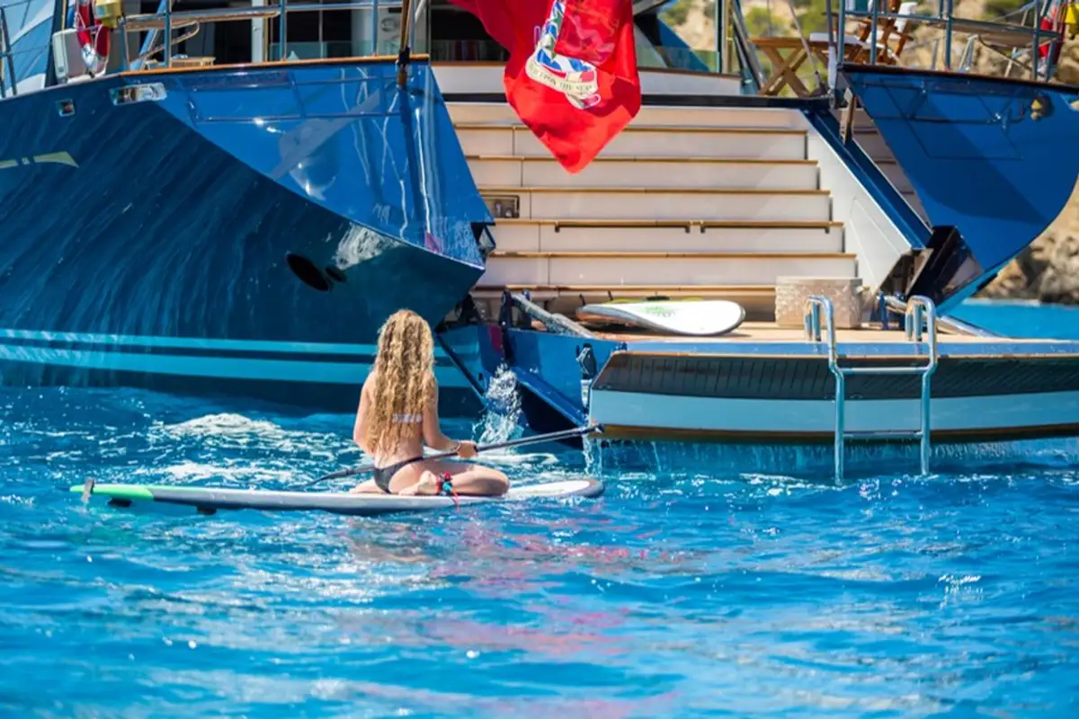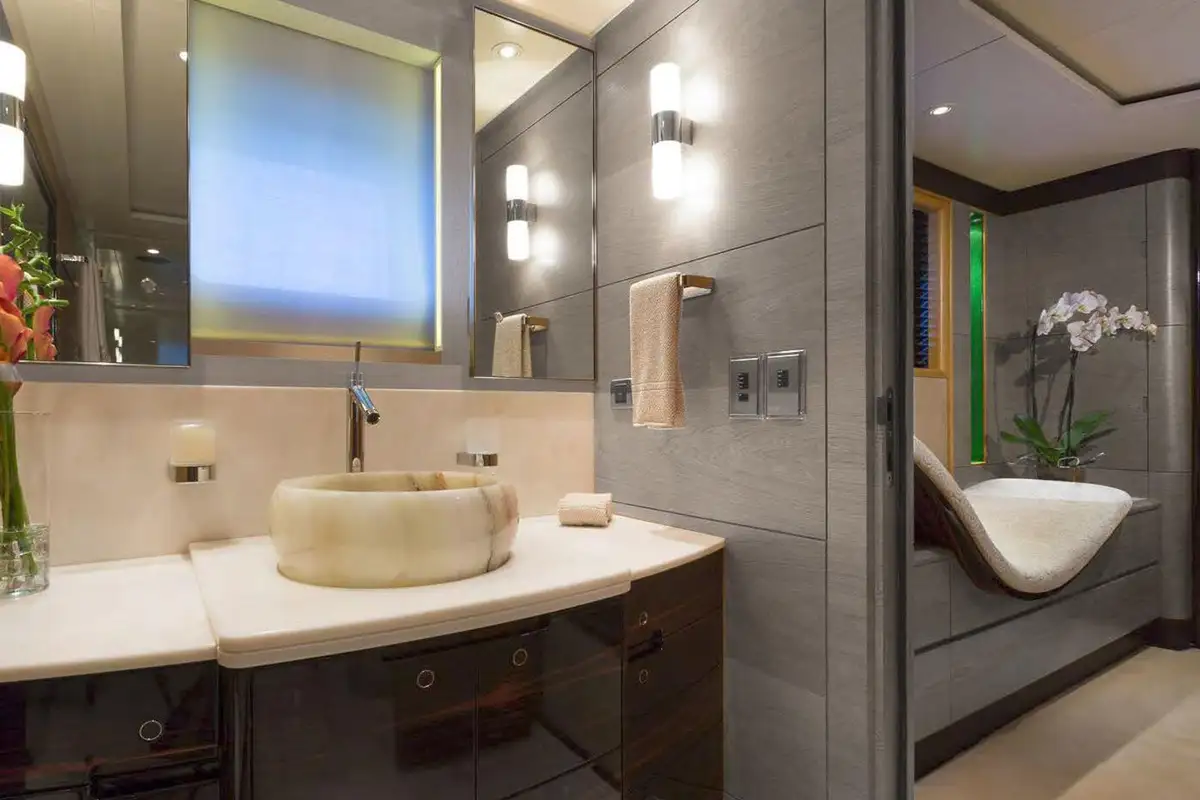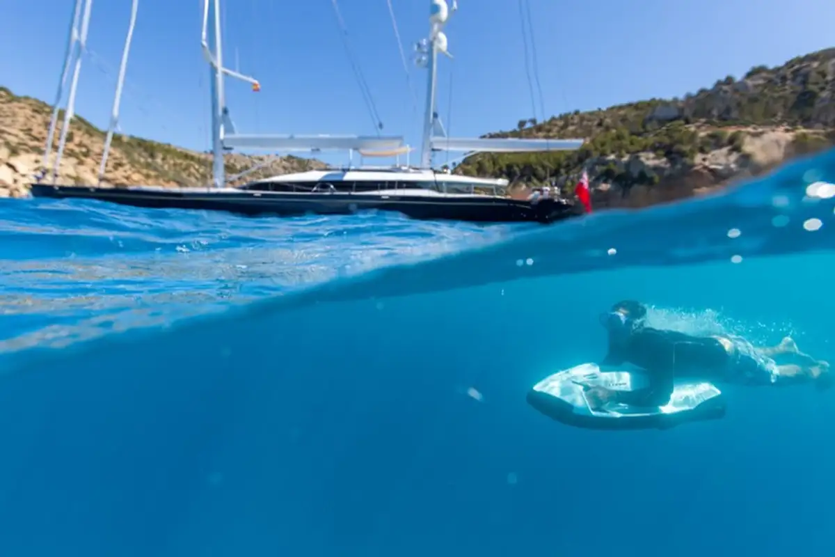 Outside, Q boasts a flybridge with a comfortable seating and dining area and a large Jacuzzi on the foredeck that is surrounded by sumptuous sunpads, ideal for entertaining and relaxing. What's more, Q houses an armada of water toys, from kayaks and water skis to snorkelling gear and inflatables.