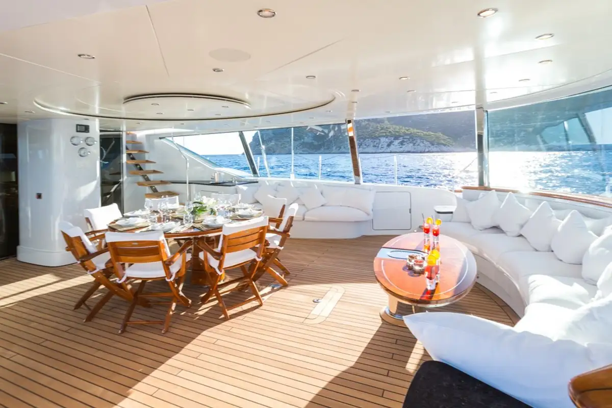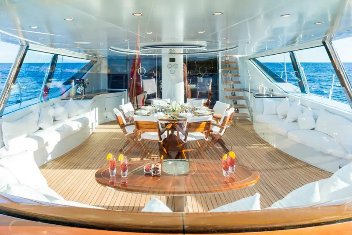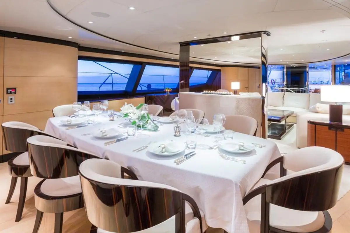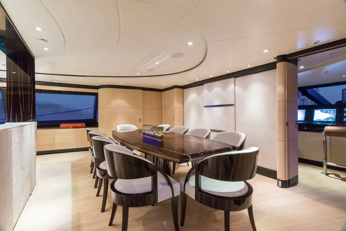 Q's spacious cockpit has been designed with a spectacular system of fully retractable windows that offers guests uninterrupted views in a climate controlled area at the touch of a button. The open plan main salon which also offers 360 degree panoramic views, is a stylish and modern space with a subtle oriental twist thanks to her fabulous Reymond Langton interior.