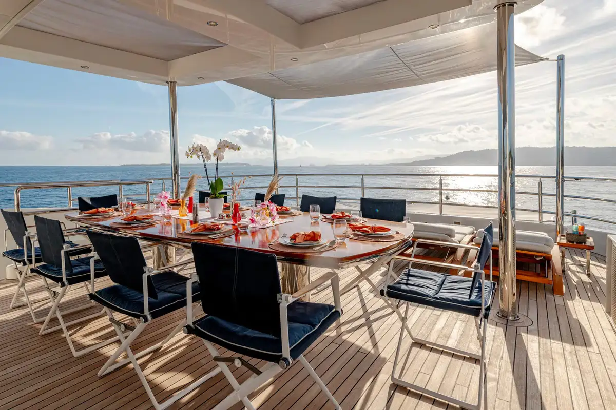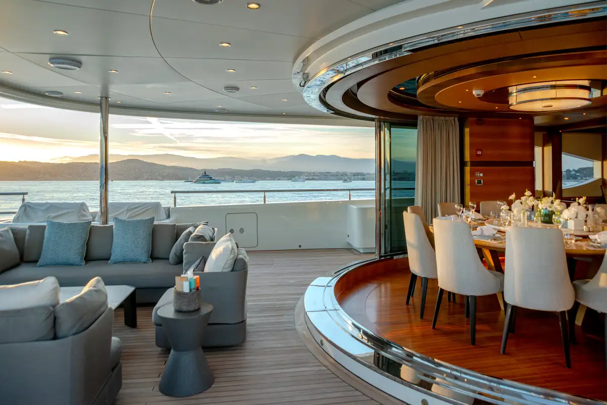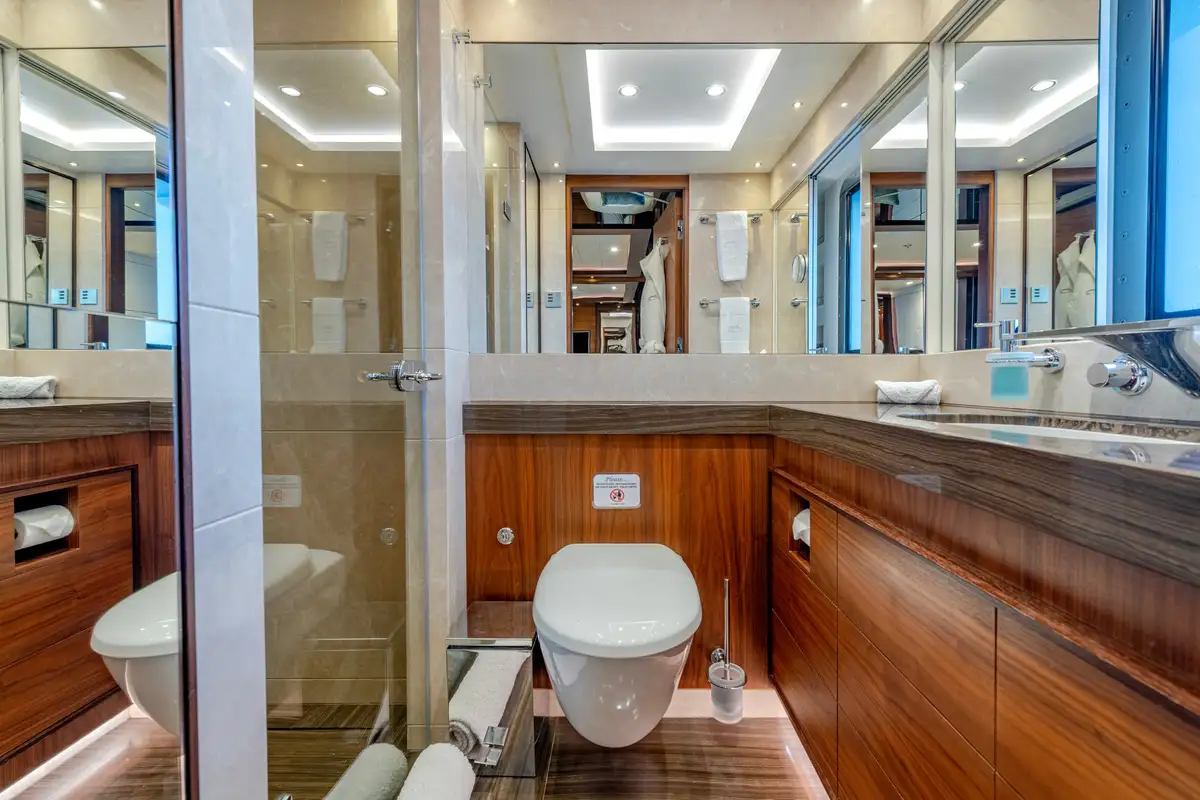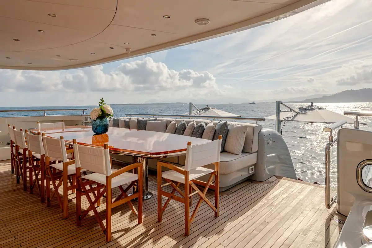 The sun deck is the ultimate place for socialising. Unwind in the glass-fronted jacuzzi or on the loungers, or sip cocktails in the lounge area serviced by a bar. In the evenings, retire to the main deck lounge which comes complete with a cinema screen for catching up on the latest Hollywood movies, or spend time in the upper saloon which is seamlessly connected to the outdoor decks.