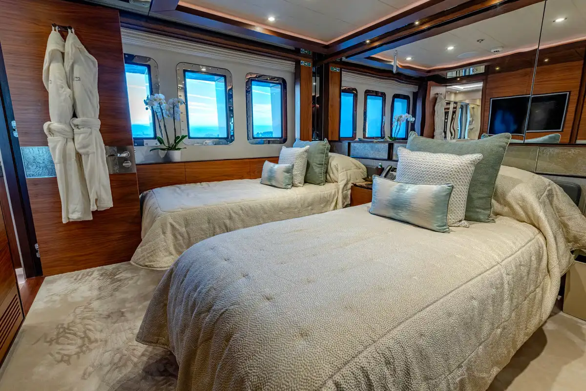 - Full-beam lower deck VIP cabin