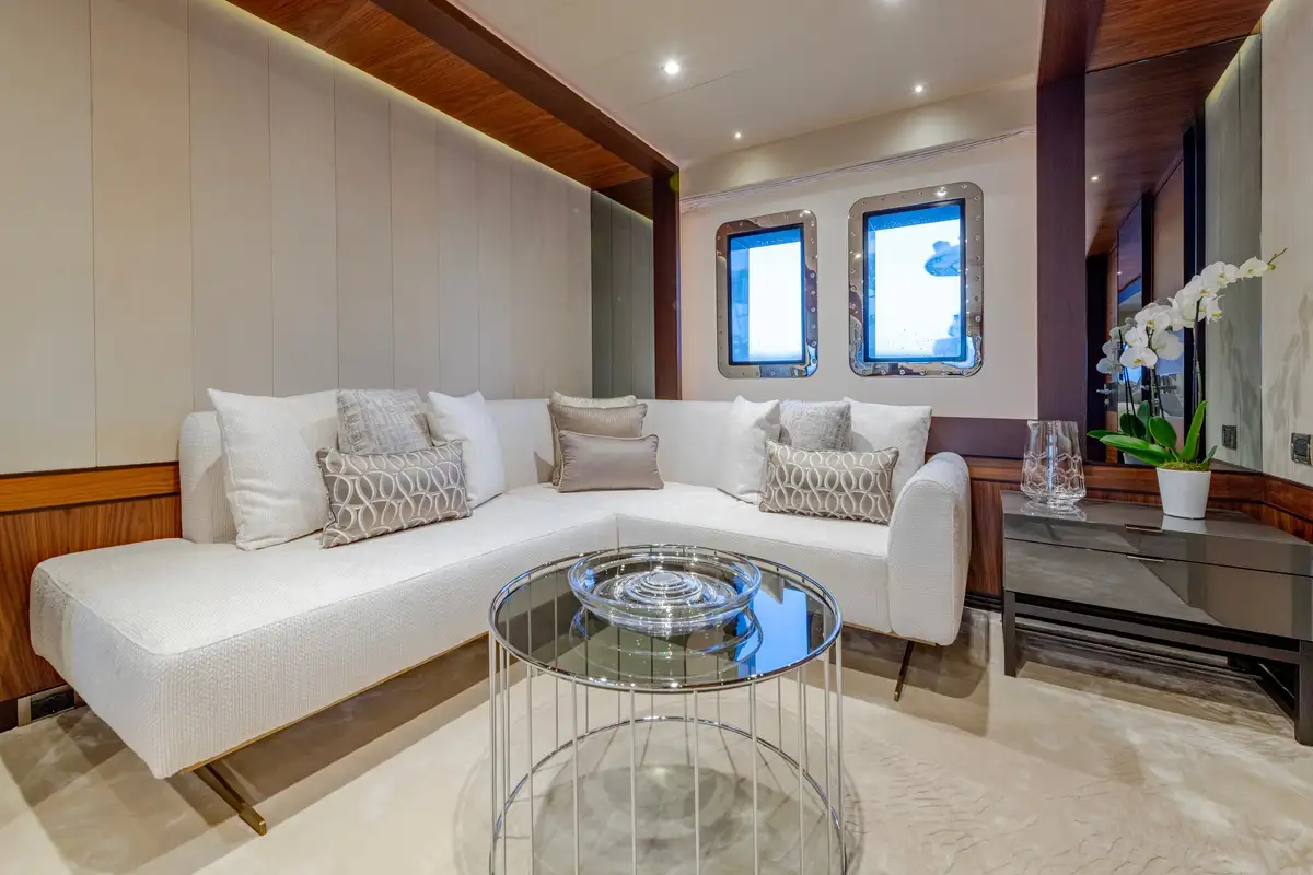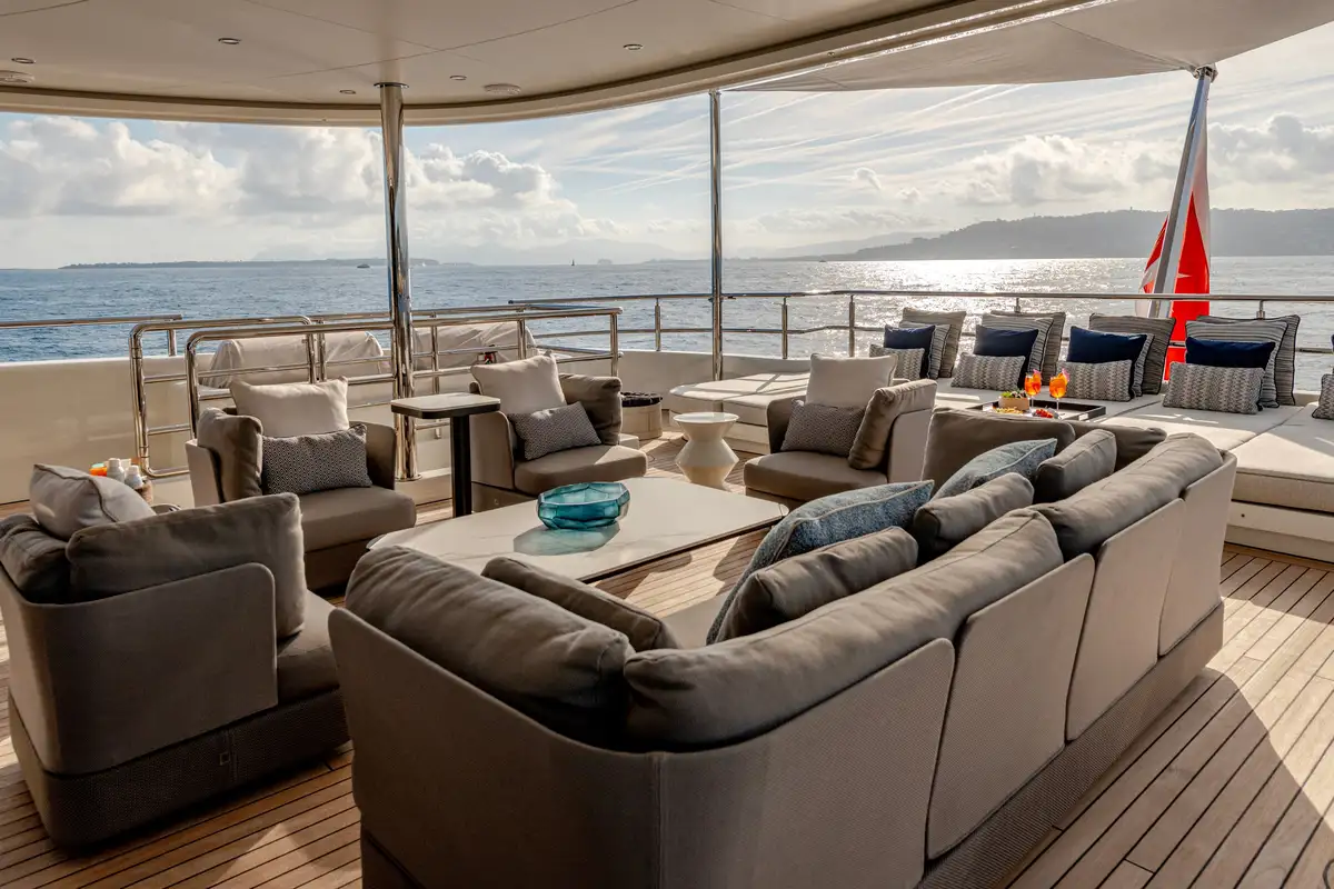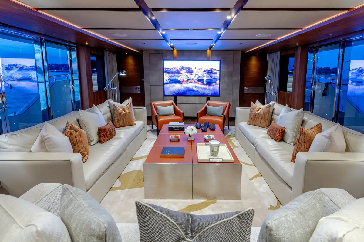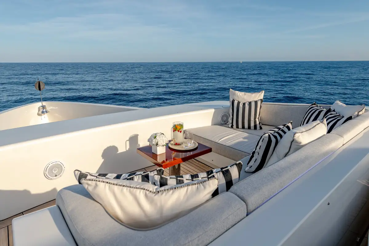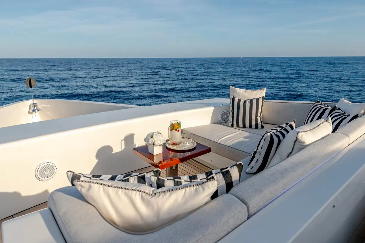 While on board, you and your guests can enjoy a variety of excellent deck spaces to make the most of your chosen cruising spot. Modular furniture on the aft deck can be arranged to suit your lifestyle, including transforming into a dedicated lounge area for younger guests.