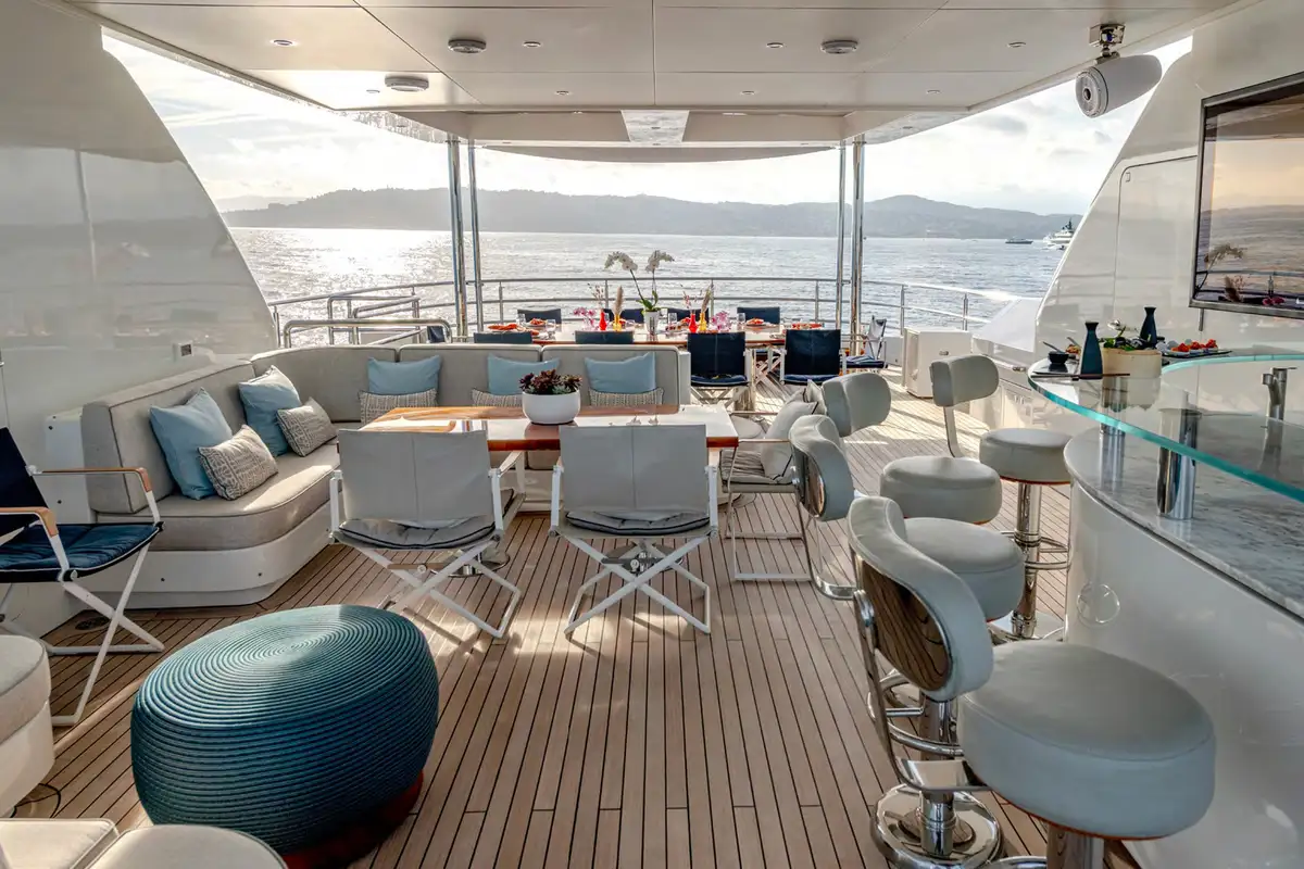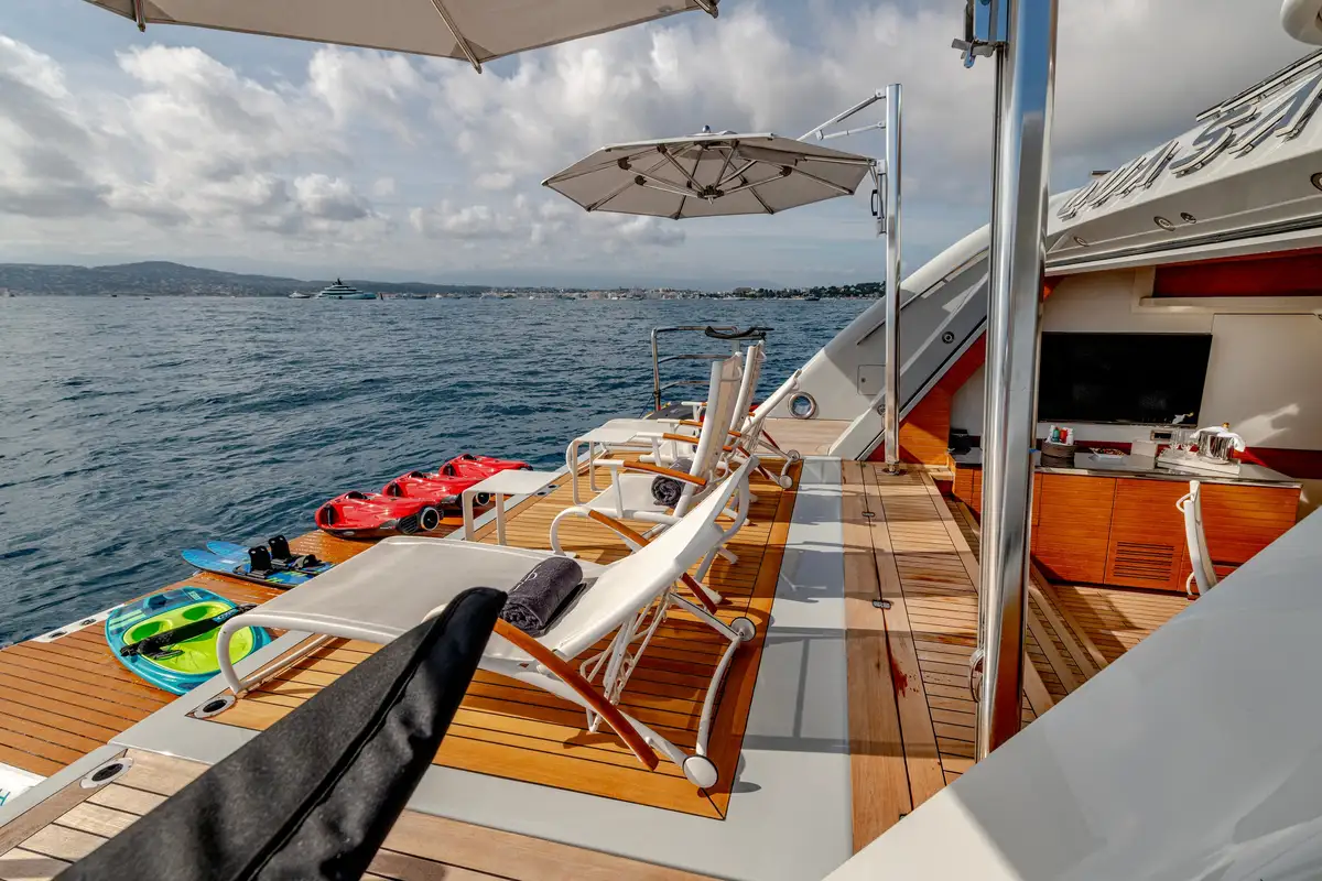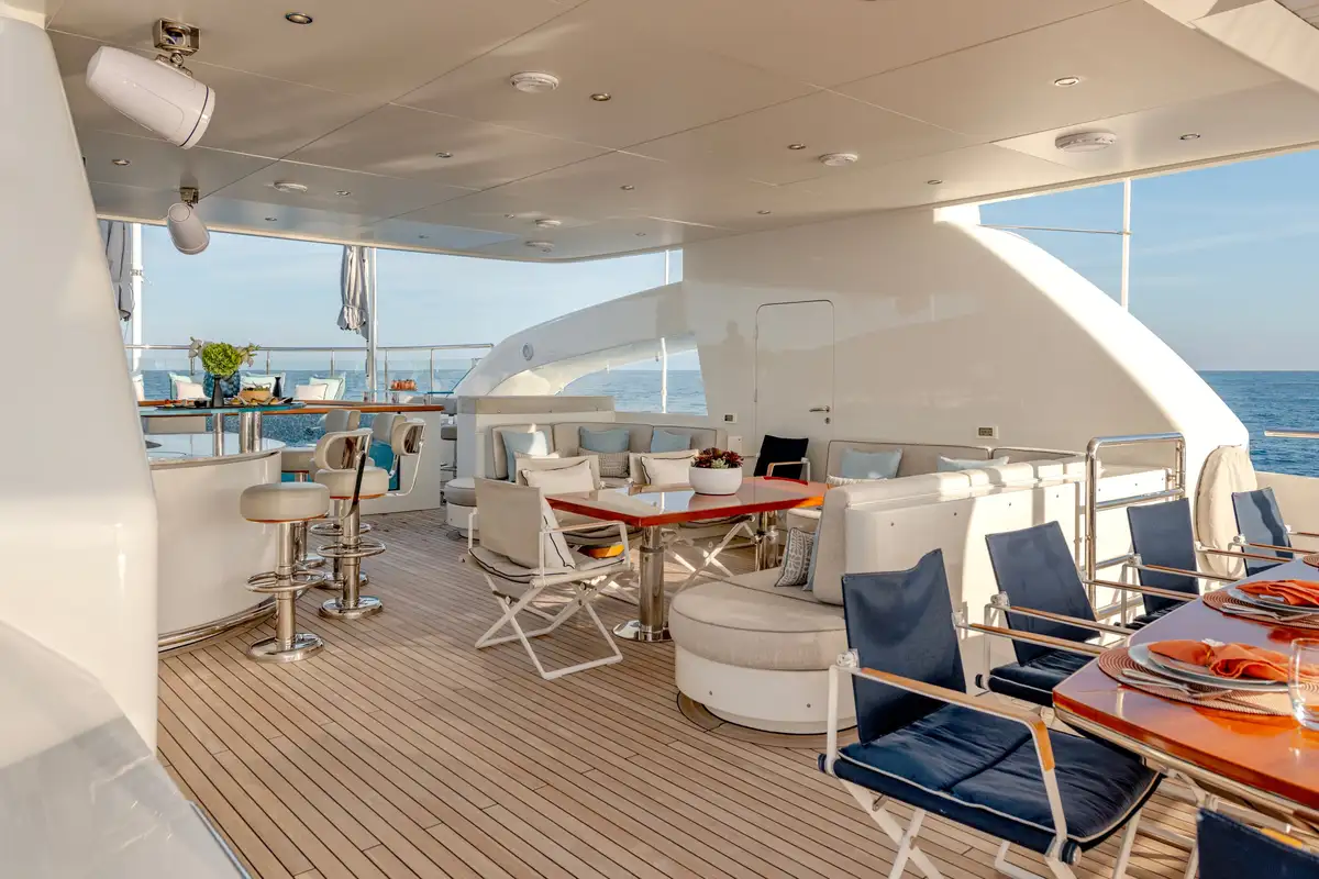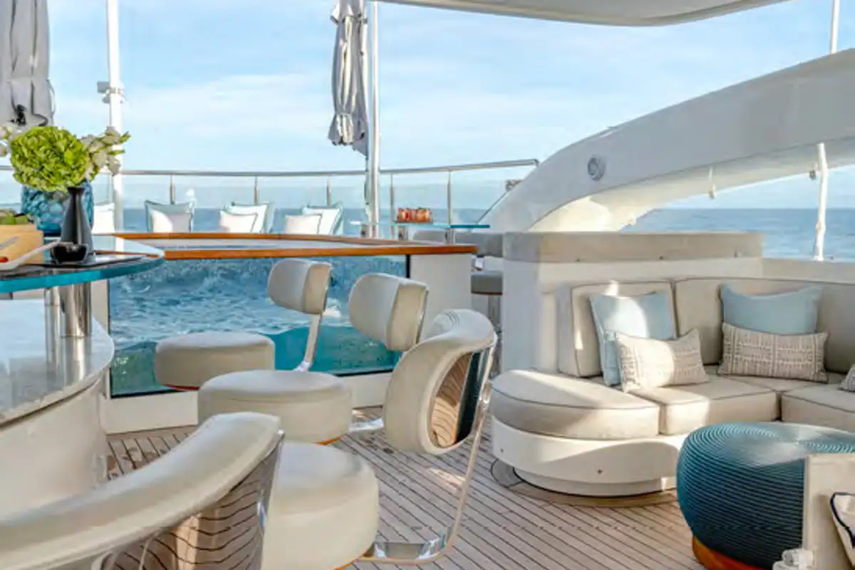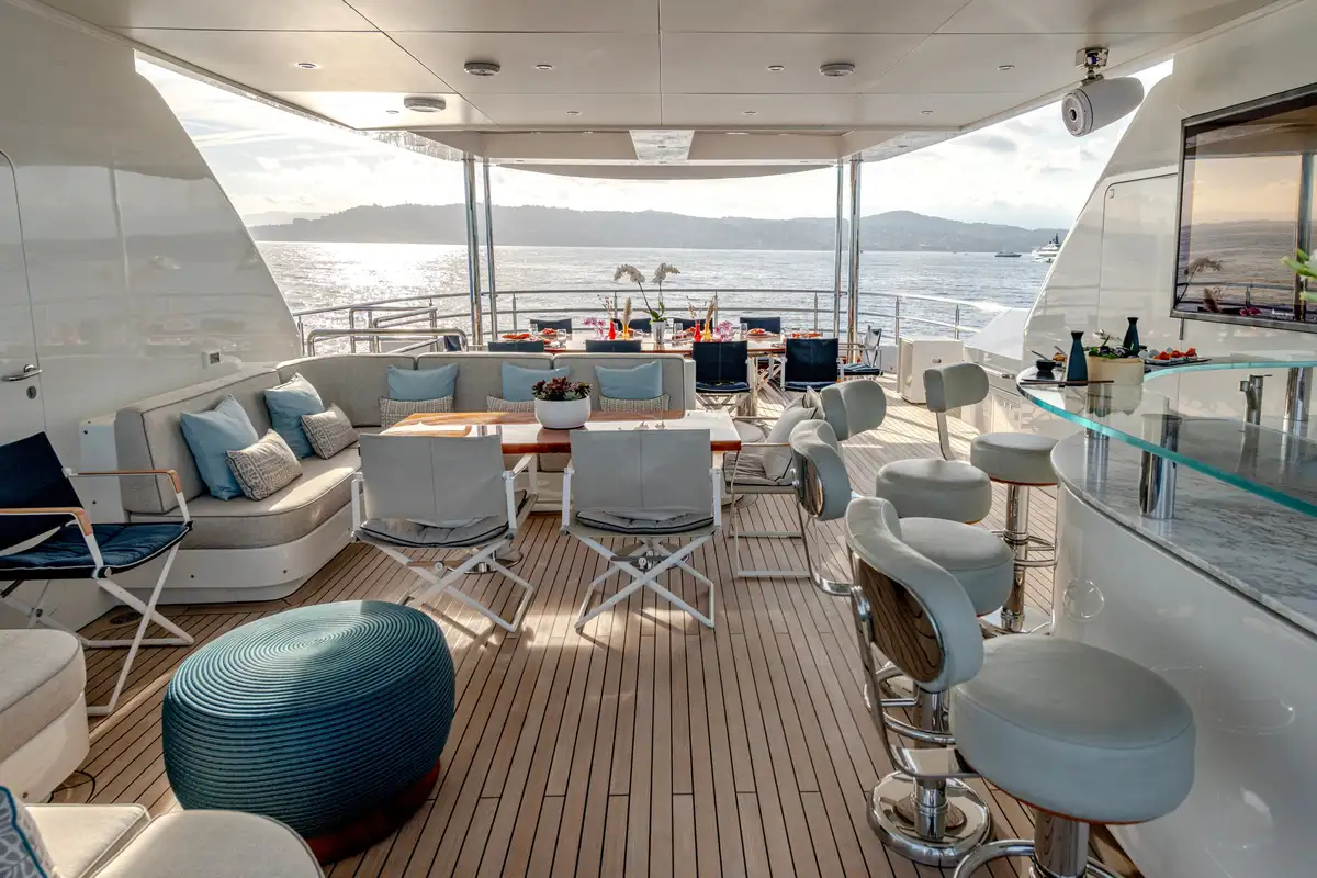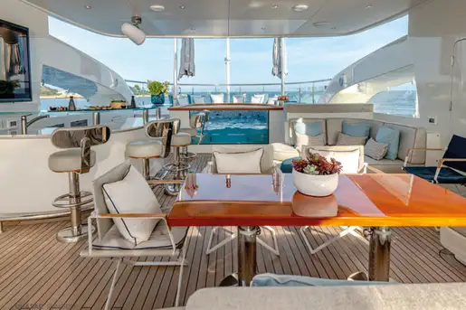 While on board, you and your guests can enjoy a variety of excellent deck spaces to make the most of your chosen cruising spot. Modular furniture on the aft deck can be arranged to suit your lifestyle, including transforming into a dedicated lounge area for younger guests.
