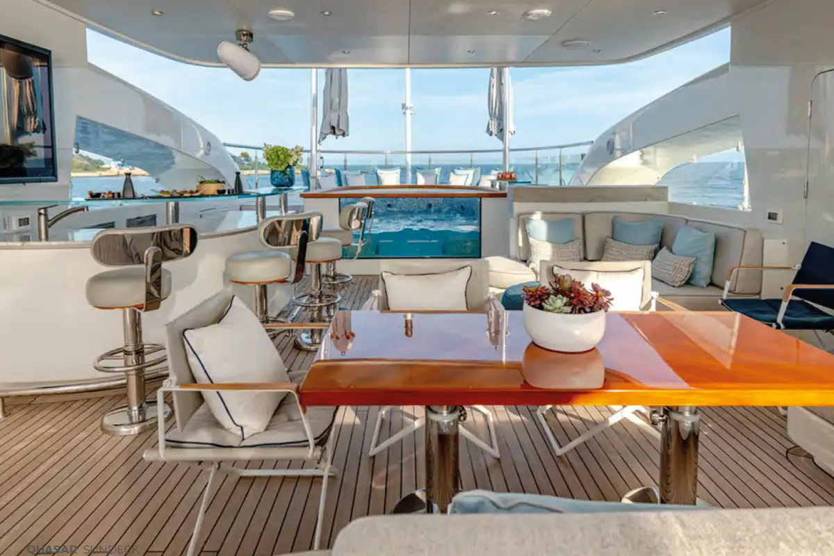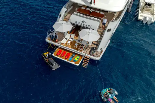 For guests looking for a seamless indoor/outdoor living on a luxury charter, look no further than QUASAR. This sleek yacht offers speed, space and attitude, with zero speed stabilisers for maximum comfort and a large selection of watertoys for endless days spent on the water.