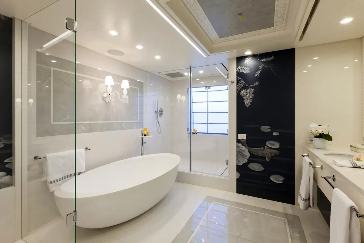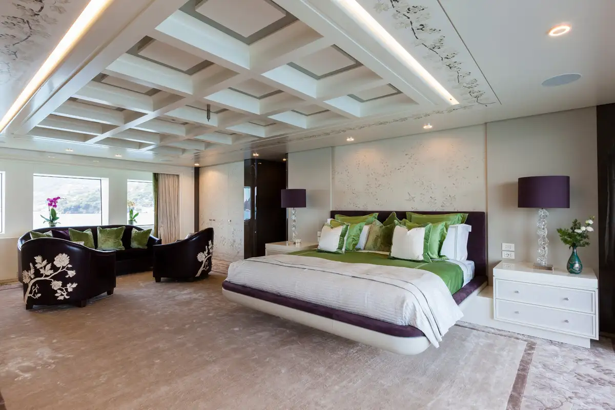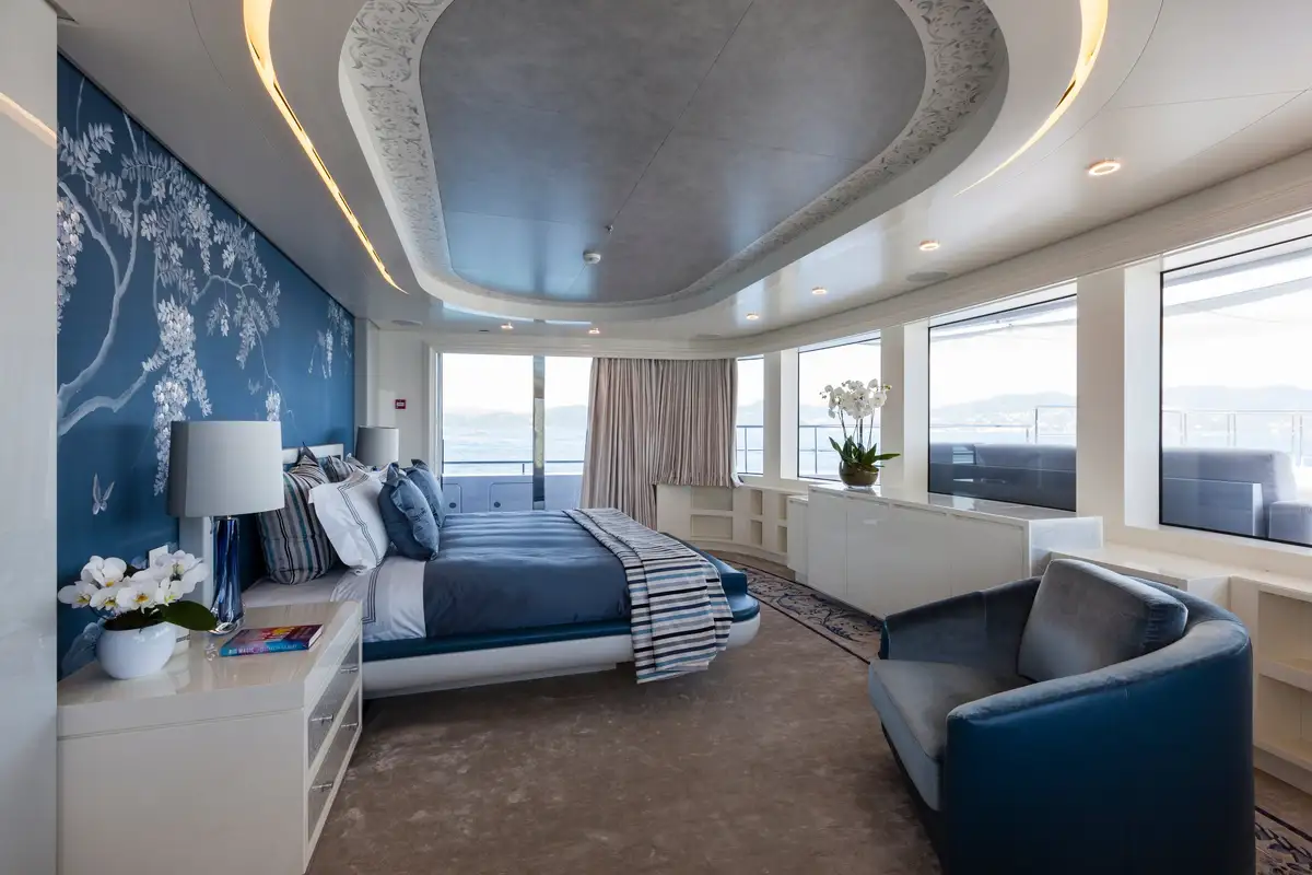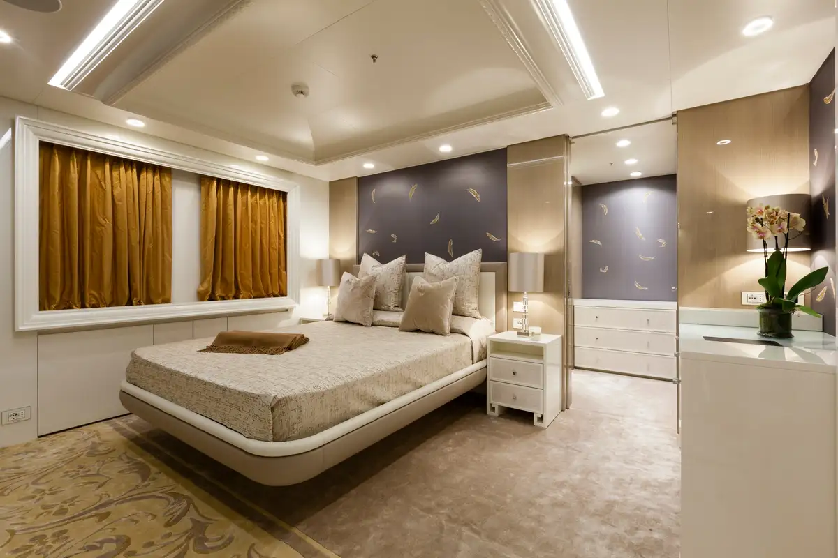 QUINTA ESSENTIA can accommodate up to 12 guests in six cabins including a master suite on the main deck and a VIP cabin with 180-degree panoramic views on the upper deck. The remaining accommodation can be found on the lower deck in the form of two VIP suites that can convert into four double cabins to suit every type of charter group or family.