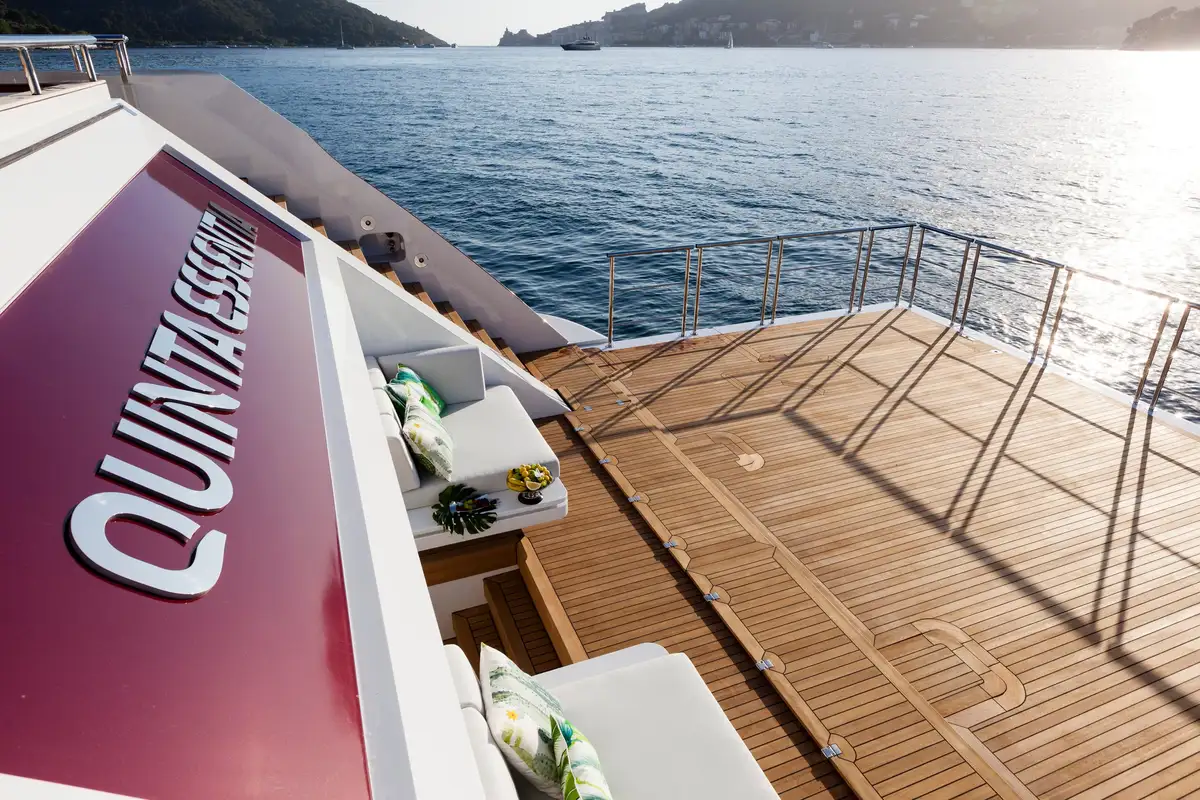 As her name suggests, wellness and harmony are at the heart of life on board QUINTA ESSENTIA. From the main deck pool to the lower deck spa with its hammam, sauna, and treatment room, she offers a true sanctuary.