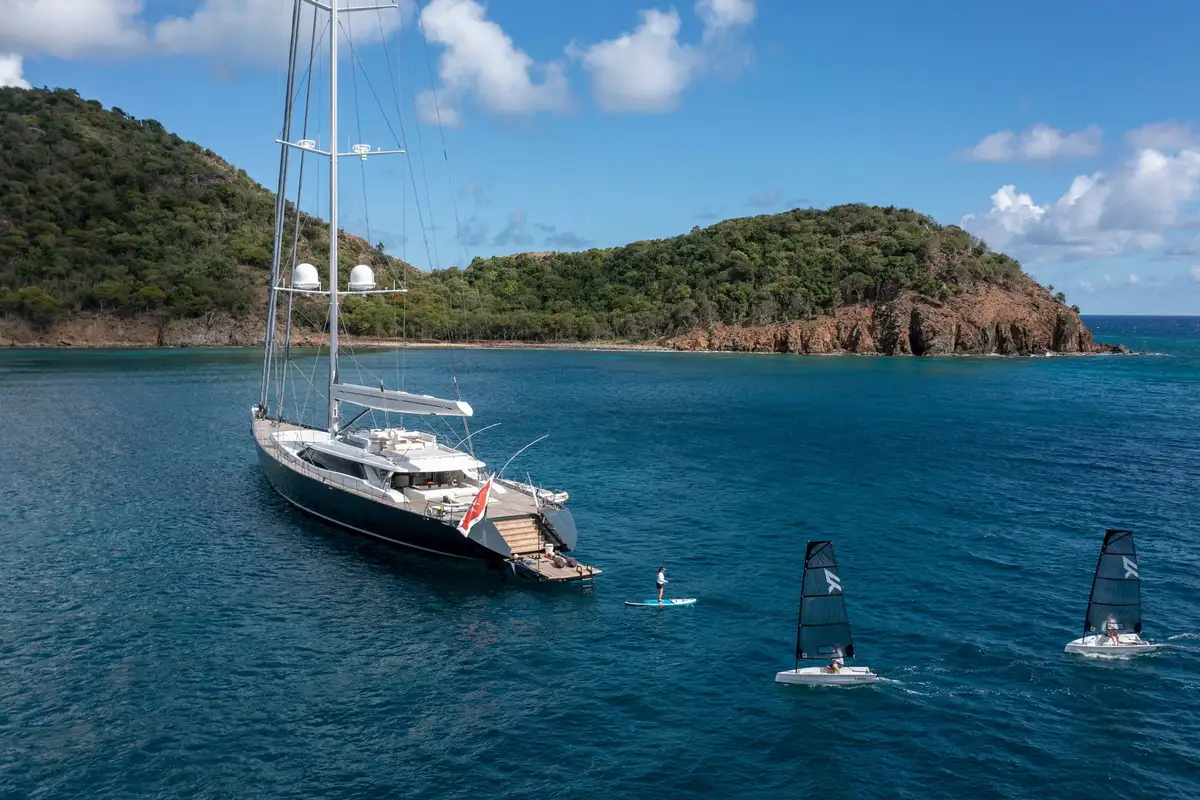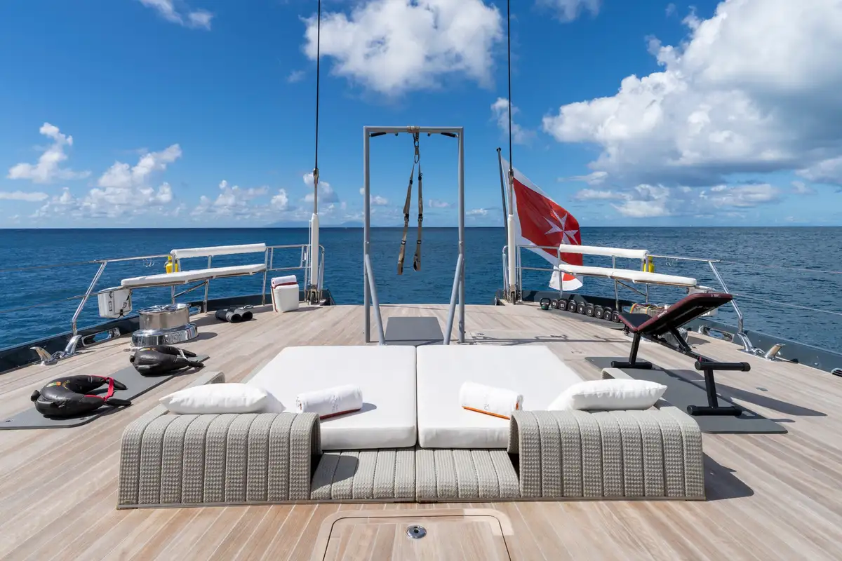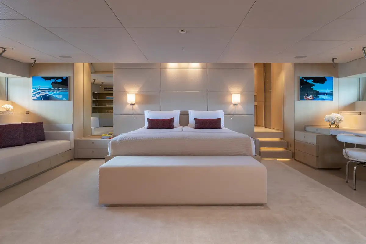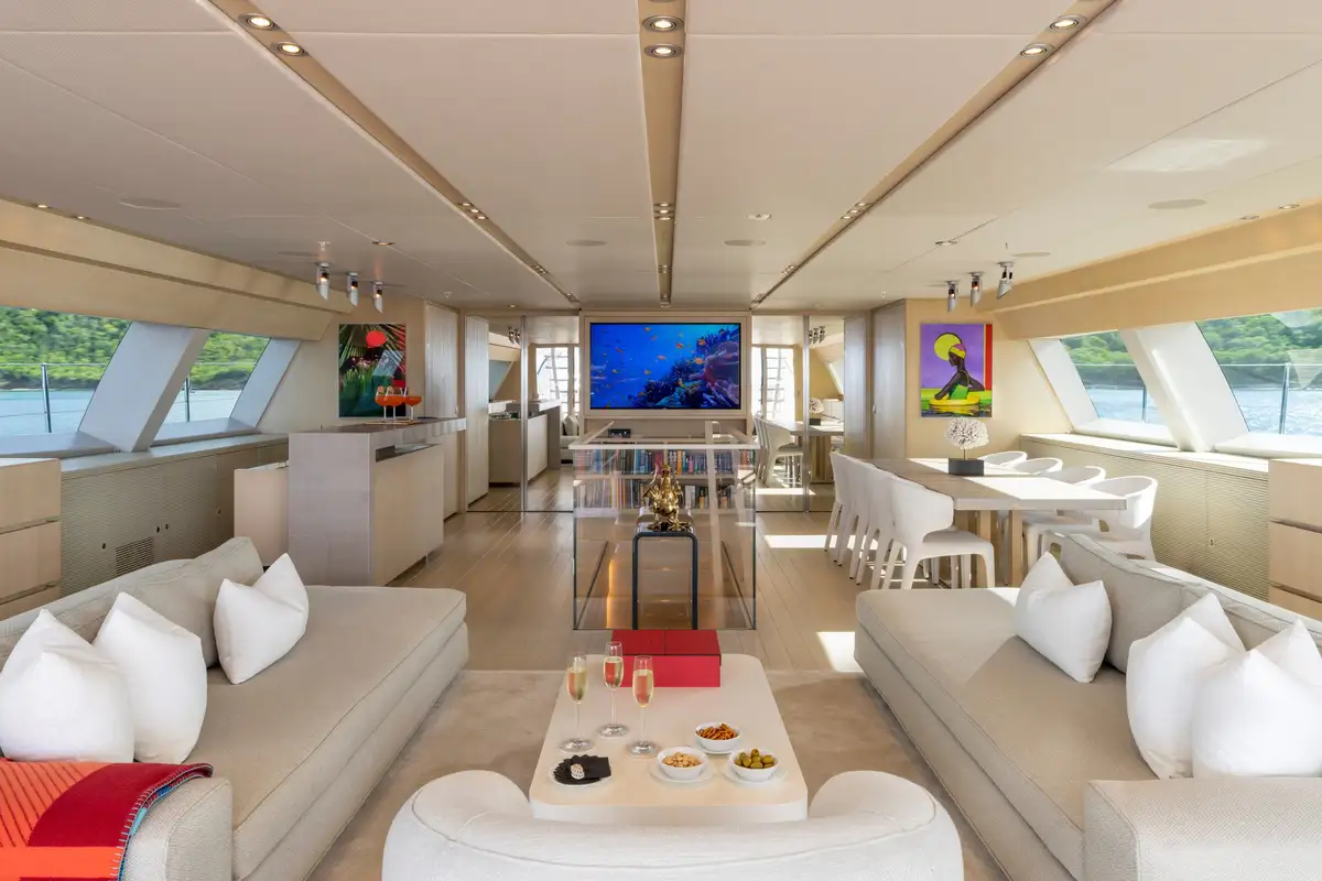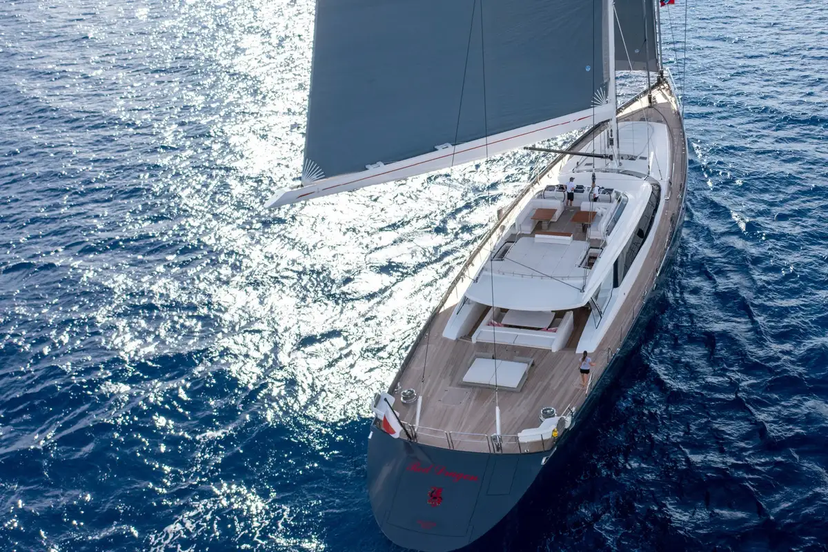 RED DRAGON is the perfect fusion of classic sailing tradition and modern luxury. Her bright, open interiors, with light wood accents and expansive windows, create an inviting and airy atmosphere. The main deck lounge, with its plush seating and panoramic views, is an ideal space to relax and socialize. The owner’s suite offers a private sanctuary, complete with an en suite bathroom and office, while four additional guest cabins ensure every guest on board enjoys unmatched comfort and elegance.