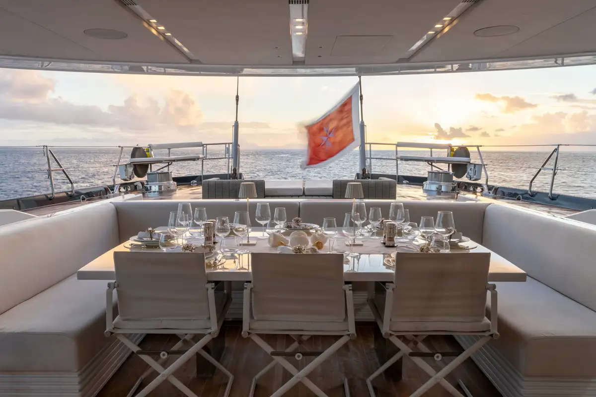 With an extraordinary cruising range of 4900 nautical miles, RED DRAGON is built for long-haul exploration in ultimate luxury. Her expansive decks offer the perfect setting for both relaxation and entertainment. Start your day with a sunrise yoga session, enjoy an al fresco breakfast on the main deck, or soak up the sun on the sunloungers.