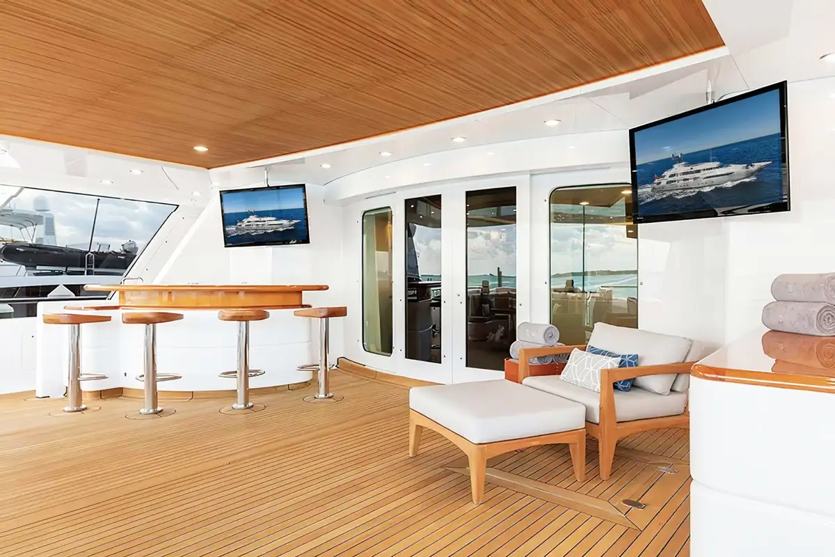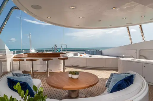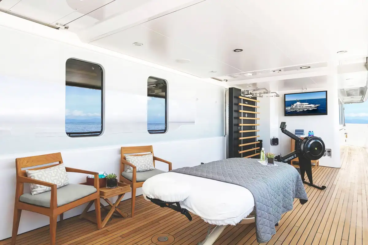 Start the day with yoga on the sun deck or working out on the gym equipment in the shaded sidedeck spaces on the bridge deck or simply sip a reviving espresso on the sun deck as the sun's warmth rises. Form the day's plans with the captain over an informal buffet breakfast of pastries, smoothies and treats the chef knows you love on the bridge deck aft.