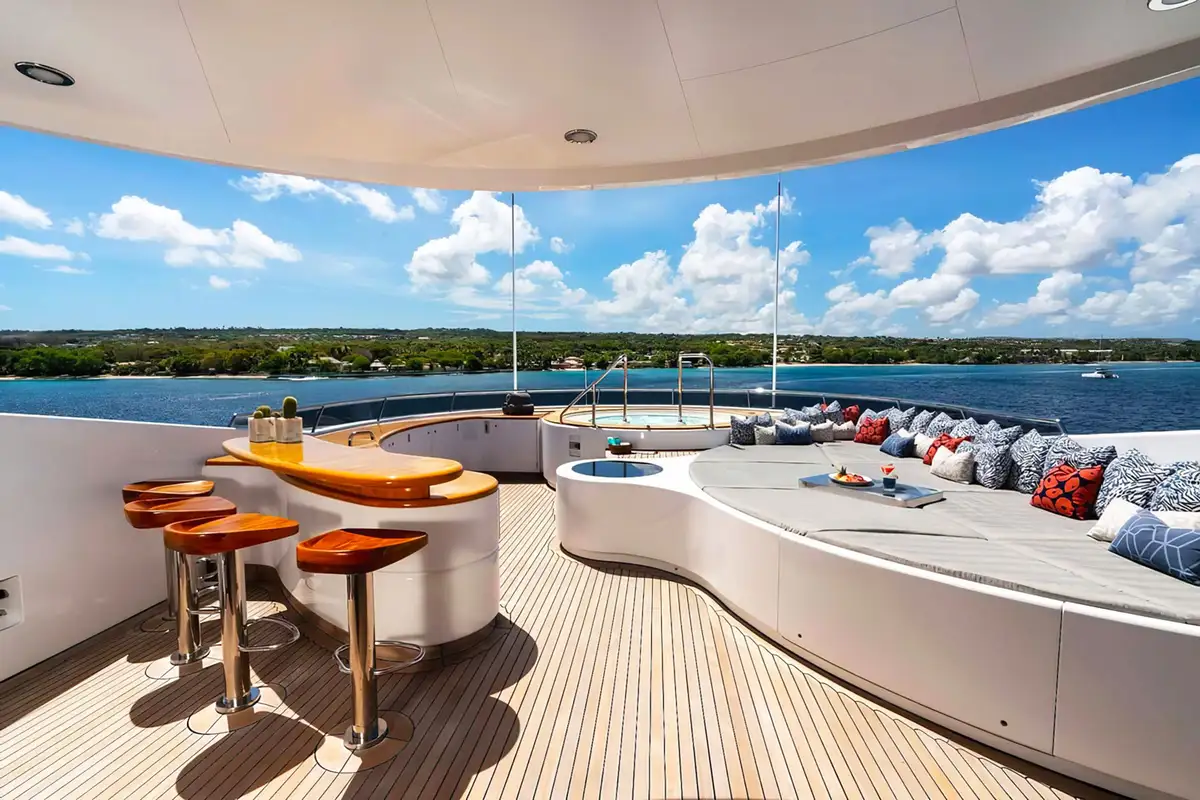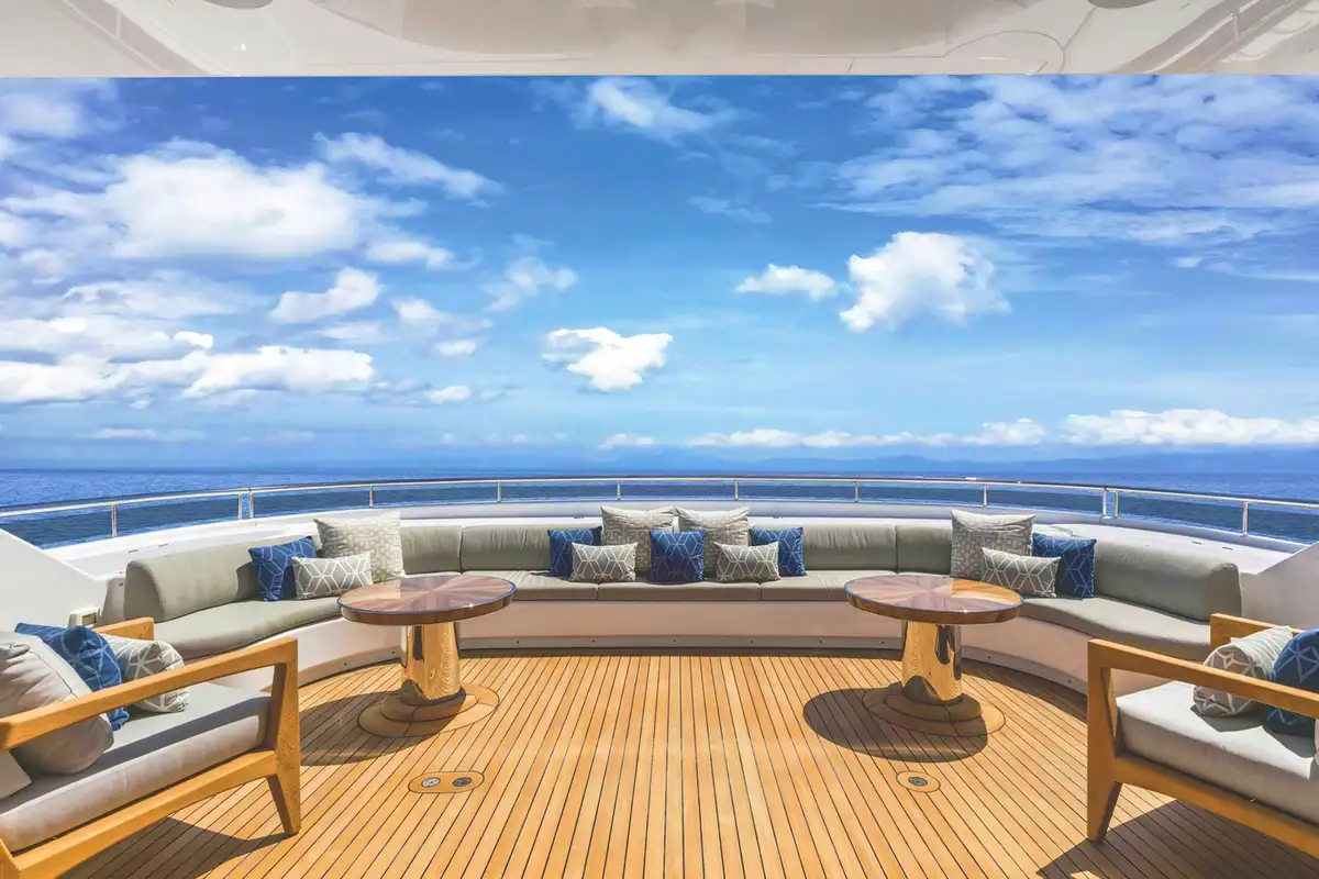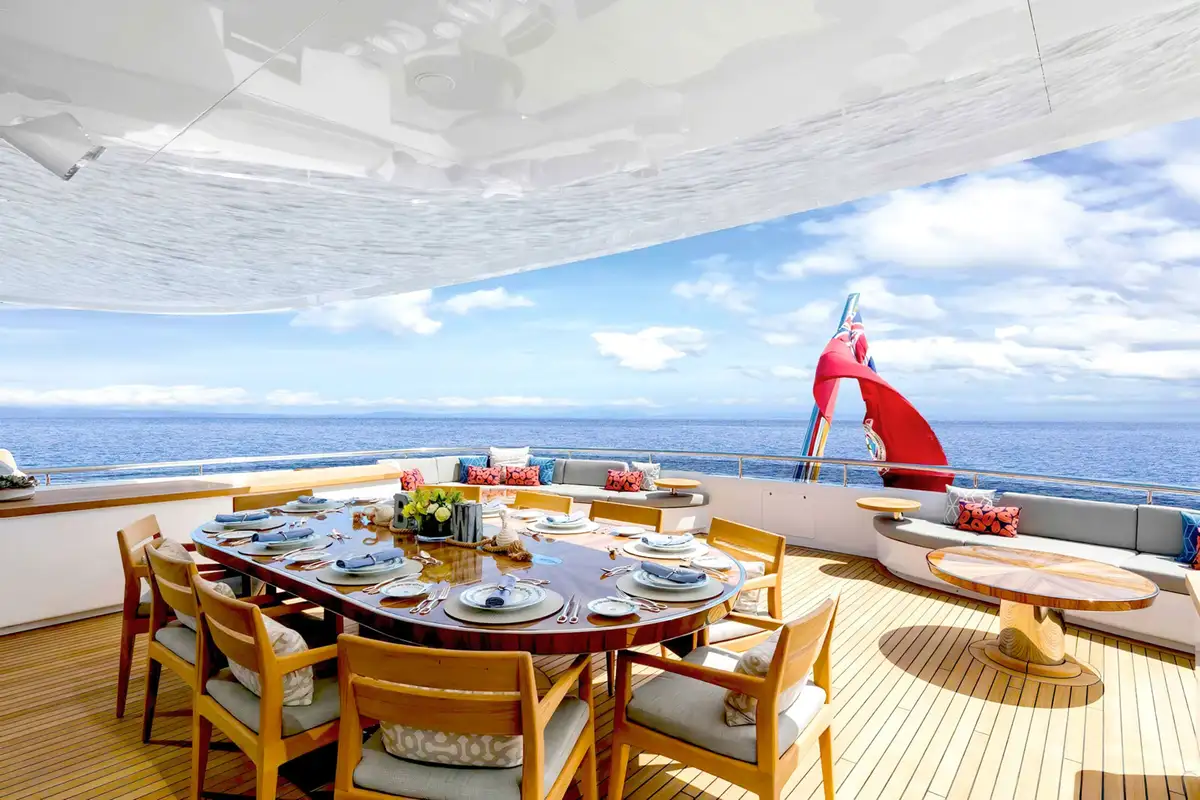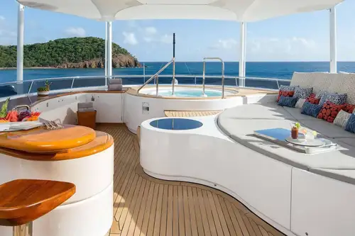 Then it's all aboard for a delicious, reviving lunch on the main deck aft. After lunch head up to the sun deck to relax in the jacuzzi or enjoy a chilled drink with the wind in your hair in the Portuguese bridge lounge as the captain steers the yacht to the next heavenly anchorage.