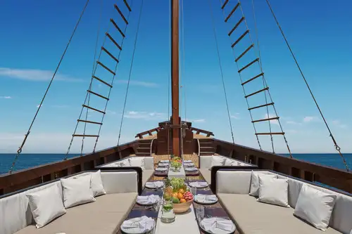 Barefoot, beachfront dining with great cocktails and the freshest seafood straight from the grill. This laid-back restaurant and bar is a must-visit Burgess recommendation during your Seychelles yacht charter.