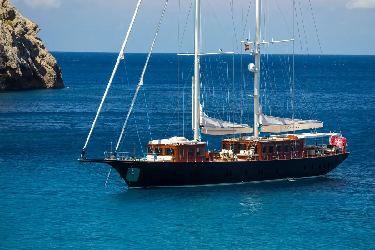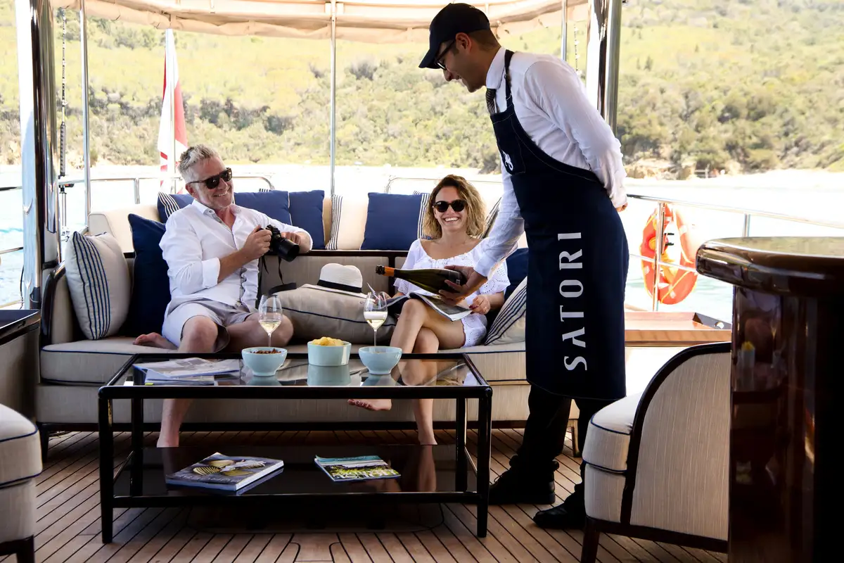 Start the morning with a refreshing dip in the cerulean sea followed by a tasty breakfast to set you up for the day. There is nothing like the exhilaration of a sailing superyacht propelled by the wind. So, after breakfast, the captain unfurls SATORI’s sails to cruise to the next anchorage while the crew help keen guests to get involved in the action on deck, creating memories that will last a lifetime. If you prefer a little quiet time, curl up with a book on the lounge’s comfy sofas or in the refreshing environs of the aft deck’s shaded sun pads.
