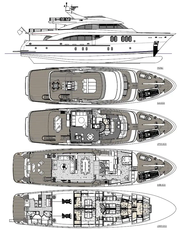 - Ample deck space with various lounge areas