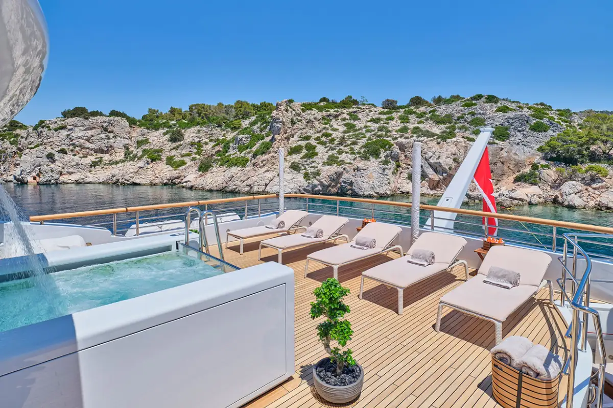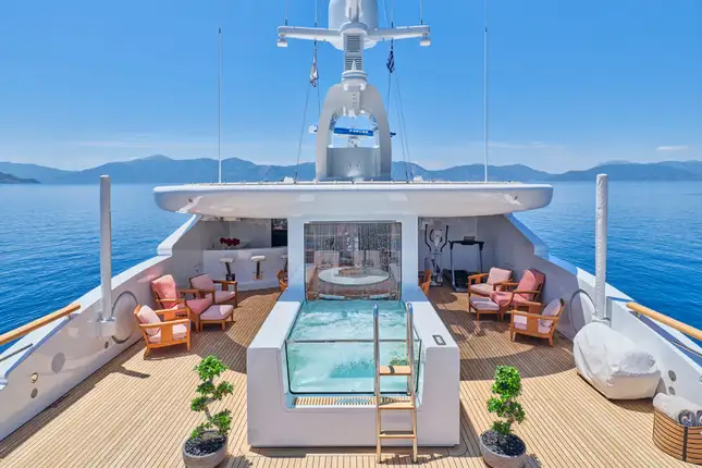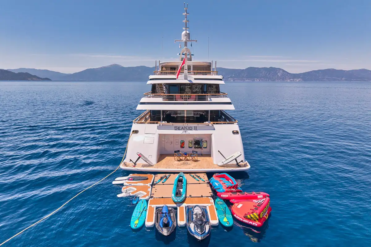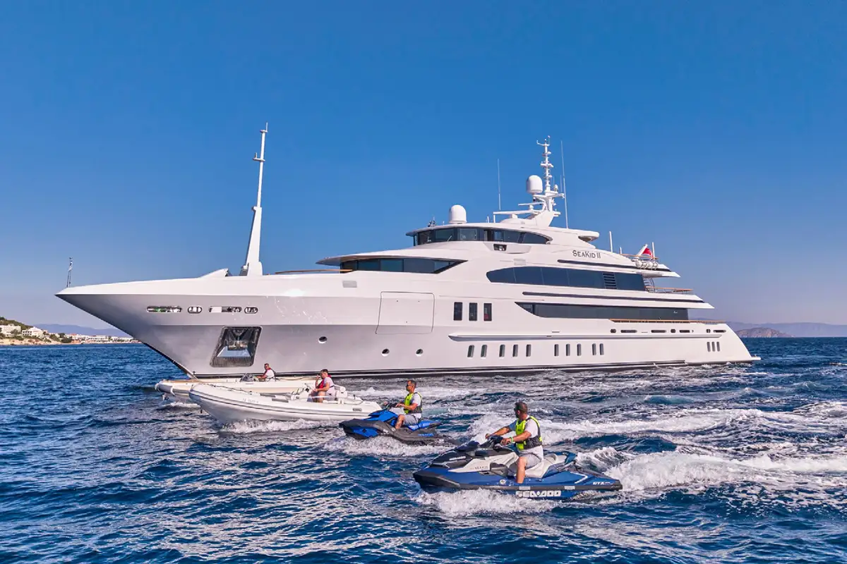 Designed for enjoyment at every level, SEAKID II offers standout features including a dance floor, private cinema, and an elevator serving all decks. The beach club invites relaxed indoor-outdoor living just steps from the sea, while the expansive sun deck is ideal for soaking in the jacuzzi or dining al fresco under the stars.