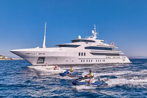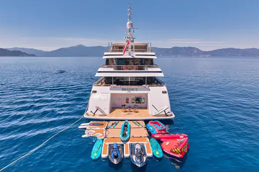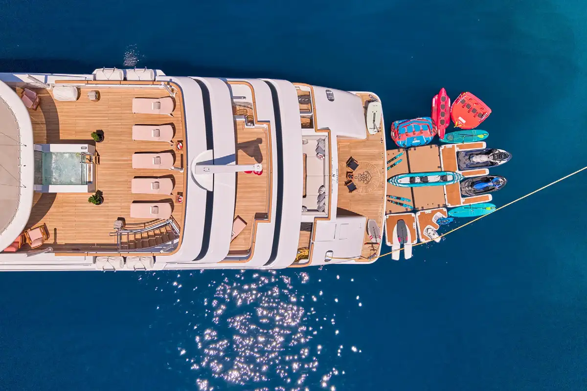 A professional crew of 15, including a talented chef and sous chef, ensures a seamless and indulgent charter experience. A comprehensive collection of watertoys completes the package, delivering adventure and entertainment for guests of all ages.
