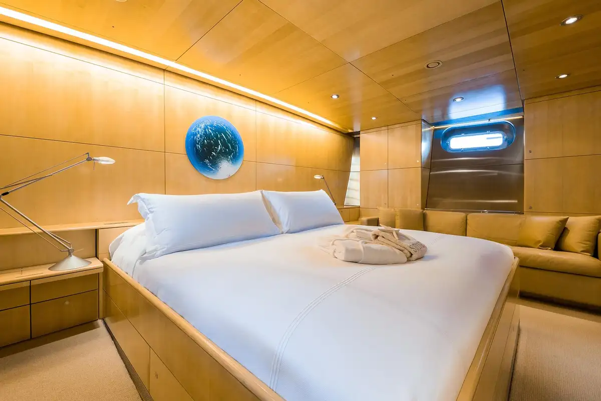 In keeping with her sleek lines, SEALEN B's has been finished to a high standard and can comfortably accommodate 8 guests thanks to her newly appointed 4th stateroom. All rooms enjoy Sonos and Apple TV and the full beam master stateroom and en suite offers exceptional space and comfort.
